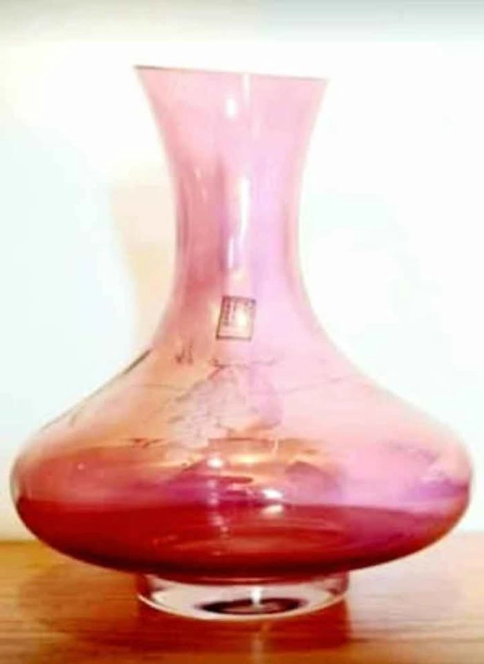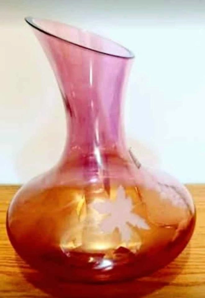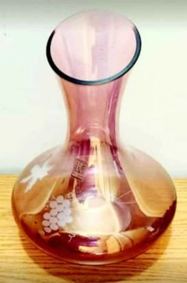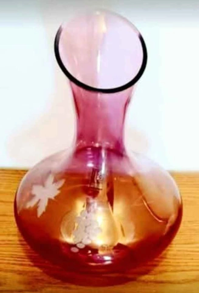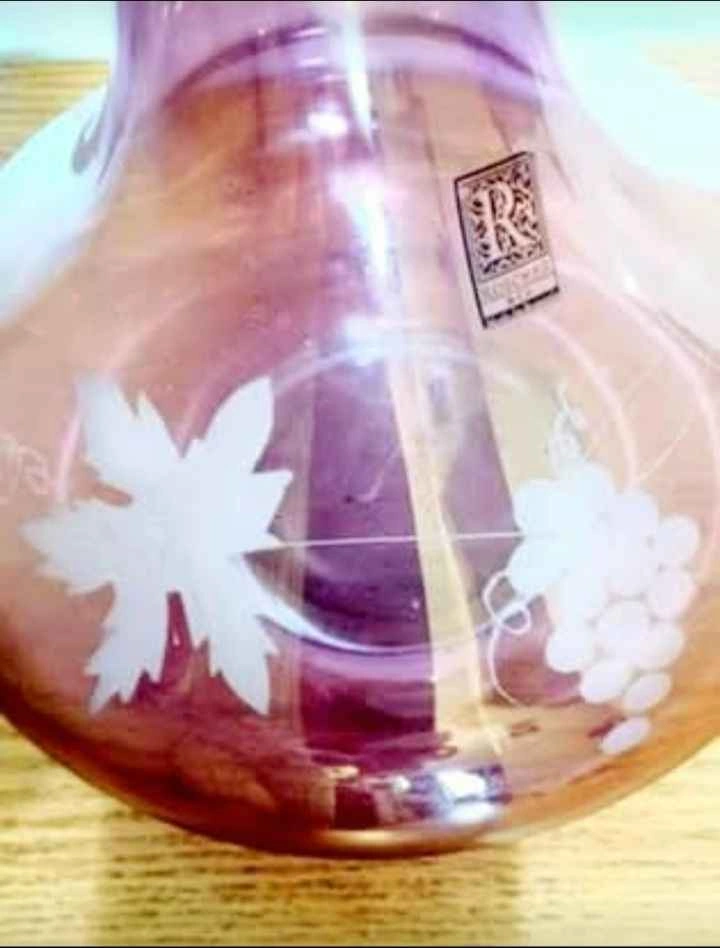 65Vintage, New, Rare, Cranberry Hand Blown 24% Leaded Crystal, Glass Art, Drinkware, Household Roscher Decanter, Vine Pattern Excellent Condition, with Sticker. Please check out my other rare collectibles!