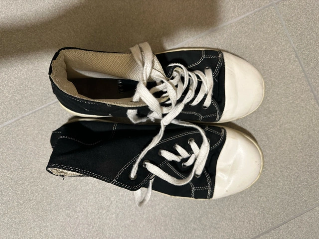 10Step out in style with these RARE MAN canvas sneakers, perfect for adding a touch of understated cool to any outfit! These used, size 8 sneakers feature a classic black canvas upper with a contrasting white toe cap and laces, making them a versatile addition to your wardrobe. Key Features: * Brand: RARE MAN * Type: Sneaker * Material: Canvas upper, rubber sole * Colour: Black and White * Size: 8 * Condition: Used I have checked Kijiji for similar sneakers, and based on the condition and style, a fair price would be around $30. Treat your feet—or someone else's—to these stylish sneaks! Don't miss out—if the ad is up, the sneakers are available, so snag them before someone else does!