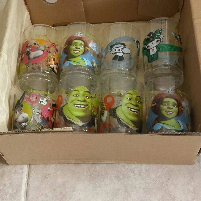 Set of 8 collectible McDonald’s glasses, including: - 6 Shrek glasses (2007 release, later recalled due to cadmium in the paint – for display purposes only, not for use) - 2 Beijing 2008 Olympic glasses The Shrek glasses are particularly rare and sought after because of the recall, making them a unique collector’s piece. All glasses are in great condition with vibrant graphics (see photos). Perfect for Shrek fans, Olympics collectors, or McDonald’s memorabilia enthusiasts. Condition: Very good, display only. Shrek glasses, McDonald’s collectibles, McDonald’s Shrek recall, cadmium Shrek glass, Olympics 2008 McDonald’s glasses, collectible glasses set