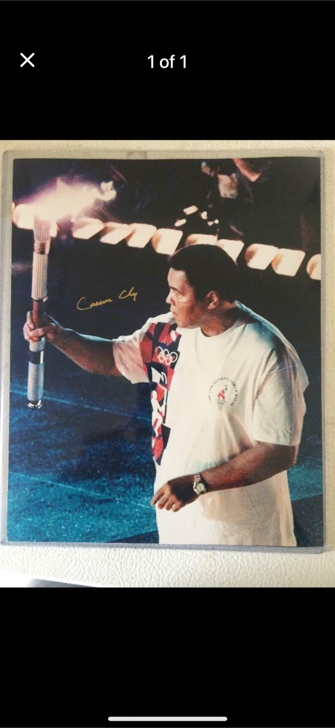 You are viewing a vintage Autographed RARE Signed Cassis Clay 8” X 10” holding the Olympic torch unfortunately I misplaced the COA card He announced his conversion to Islam and changed his name from Cassius Clay, which he called his "slave name", to Muhammad Ali. This Signature is Extremely Rare as most of his Items are Signed Muhammad Ali P/U Brampton
