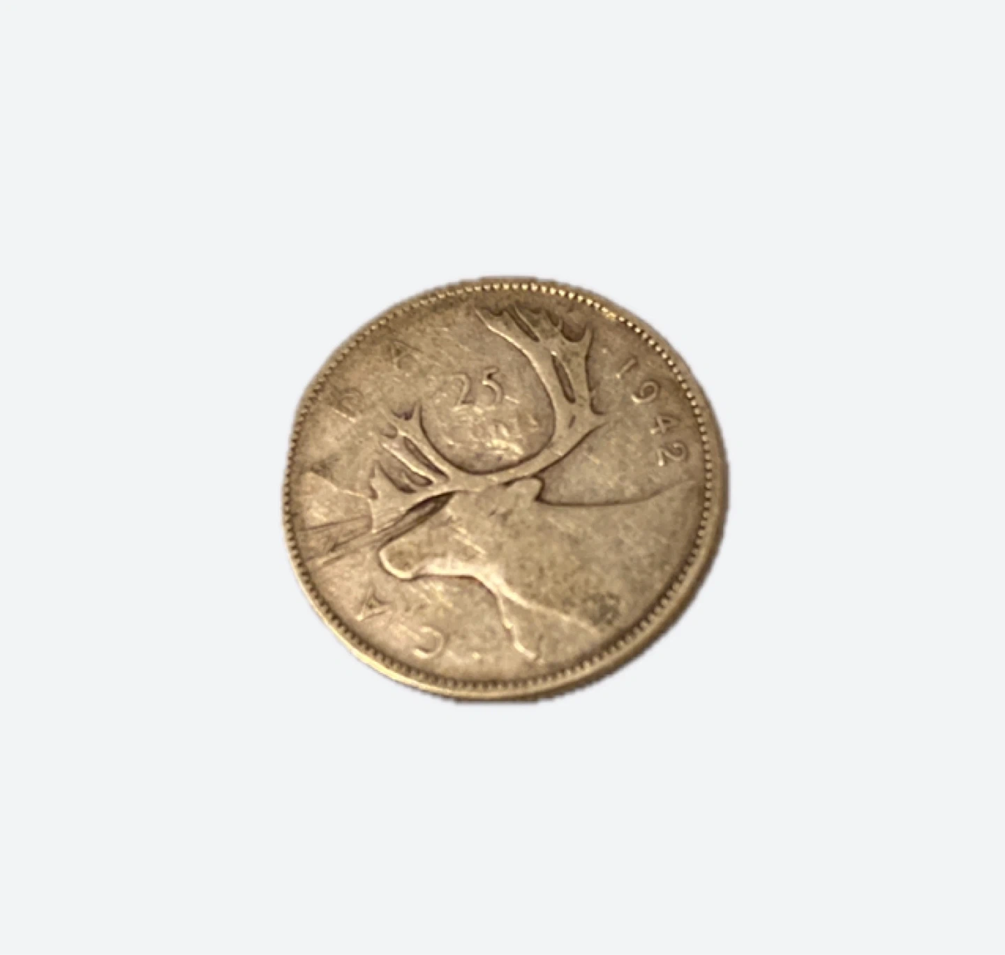 Selling a vintage 1942 Canadian quarter featuring a caribou on the reverse side. A great piece for collectors or anyone interested in Canadian history!