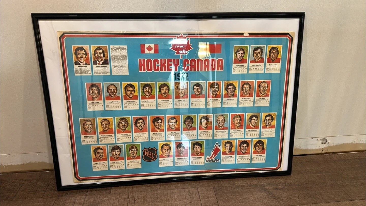 15For Sale: Selling a rare vintage framed Hockey Canada poster from 1972 Canada/Russia Summit Series. This poster is in GREAT condition for its age!! It features artistic portraits of the entire 1972 Team Canada Roster. A great collector piece for any hockey fan/historian.