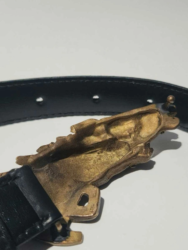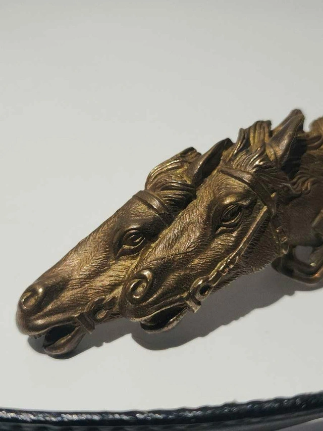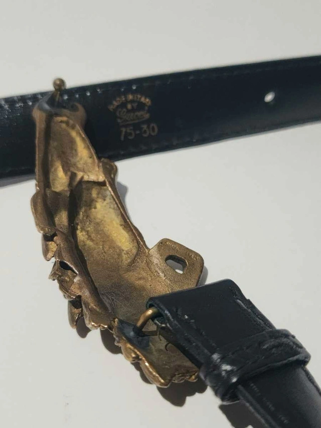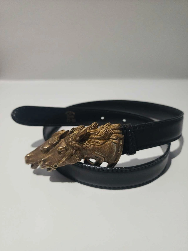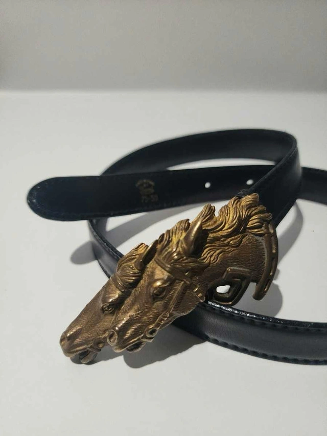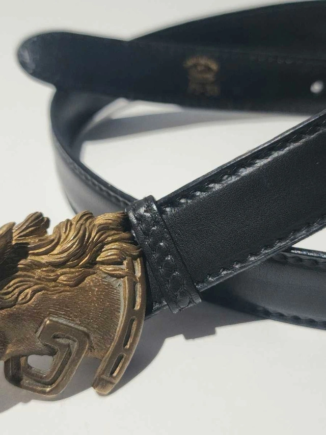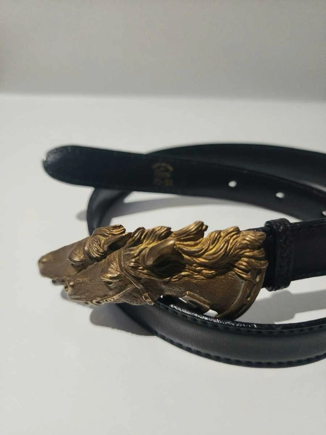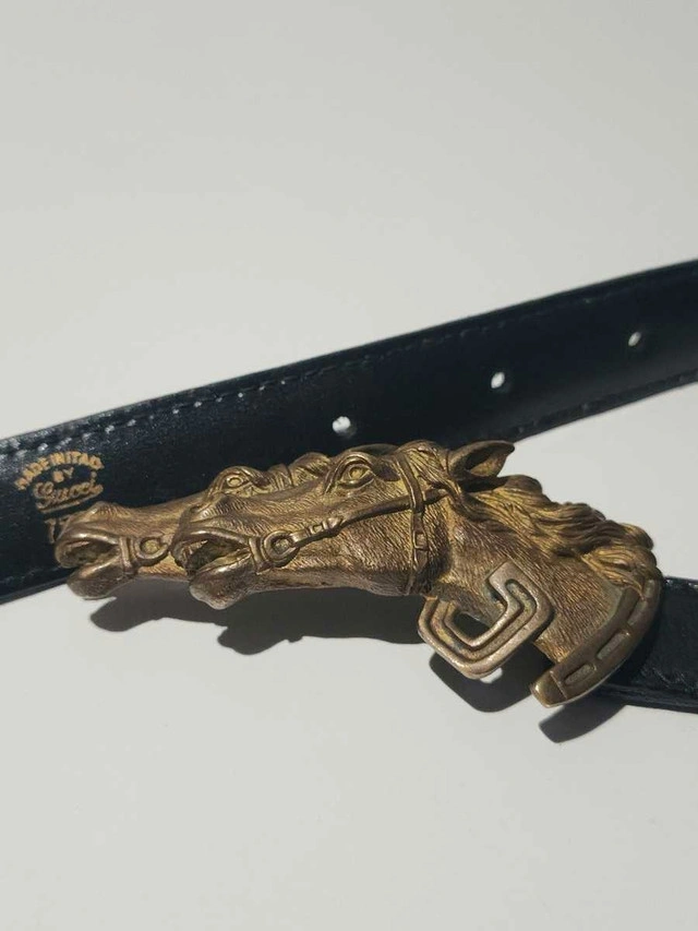 15Crafted with meticulous attention to detail, this exquisite rare accessory boasts a bronze buckle adorned with the iconic double horse head motif, a symbol of Gucci’s equestrian heritage and Italian elegance. Handcrafted from the finest leather, each stitch tells a story of unmatched quality and style, making this belt a coveted collector’s piece for those with an eye for distinctive fashion. Elevate your attire with a touch of vintage glamour and let this remarkable belt be the crowning jewel of your ensemble. Original size: 75/30 Belt measures 35.5″ in length from buckle to end and 28.75″ from buckle to first hole. The width of the belt is 1″. 100% Leather Made in Italy Very good Instagram: @theheirloomstore_ We accept Interac EMT, credit cards (Visa, American Express, Mastercard), debit cards, or PayPal—all processed securely. For flexible payments, use Afterpay to split your purchase into 4 interest-free installments. No fees, no interest—just select Afterpay at checkout for a more convenient way to shop.l We offer free shipping for customers in Canada and the U.S. For inquiries, text 647-fivehundred-6461. Thanks.