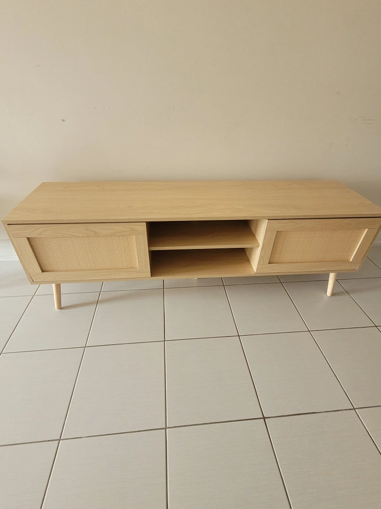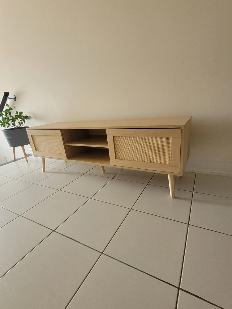 Selling a lovely rattan TV console or stand. It has a natural, light wood finish and the rattan doors give it a nice, airy feel. Great for adding a touch of boho or coastal style to your living room!