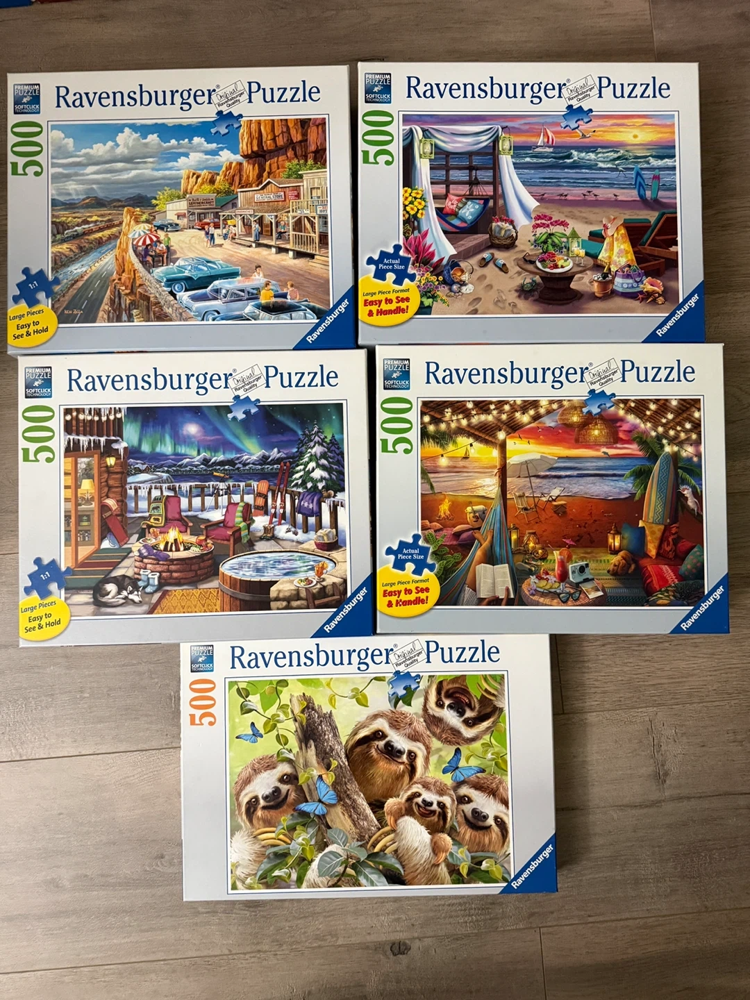 0Selling a collection of Ravensburger 500 piece puzzles! Each puzzle features a unique and beautiful design. Perfect for a relaxing evening or a fun activity with friends and family