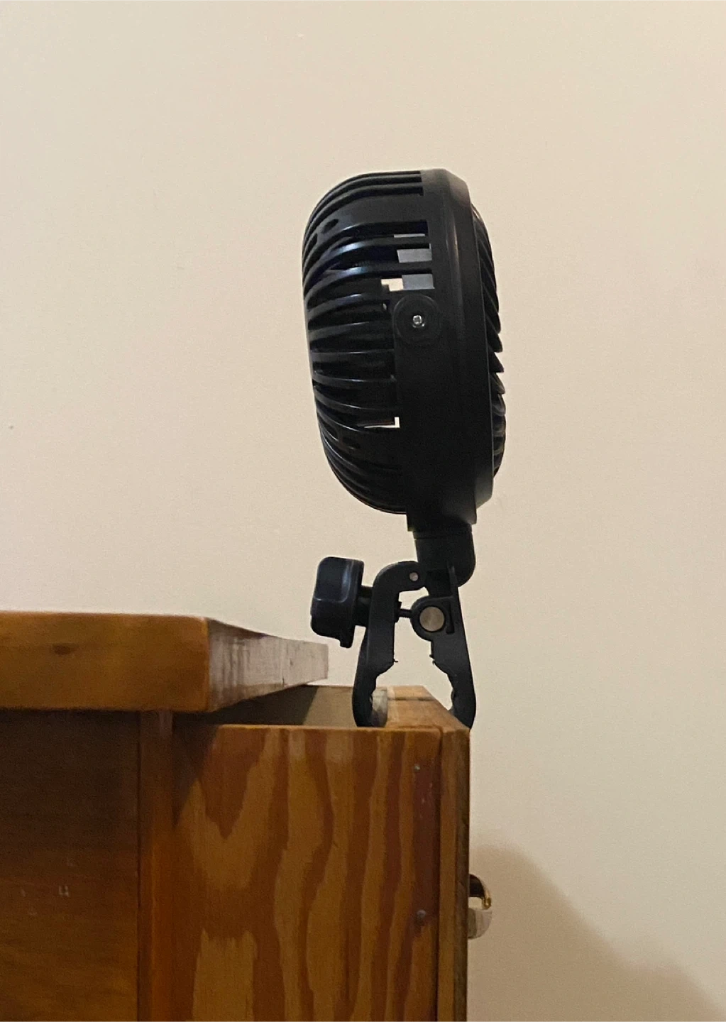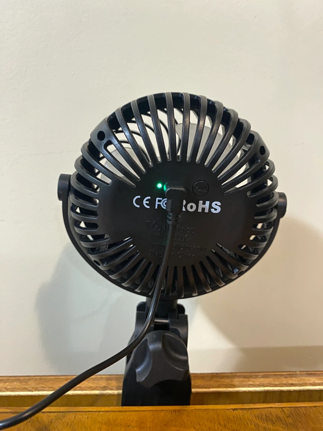 Works great for cooling off at a desk, placed at a beside drawer, or clipped onto exercise equipment like a peloton or treadmill.