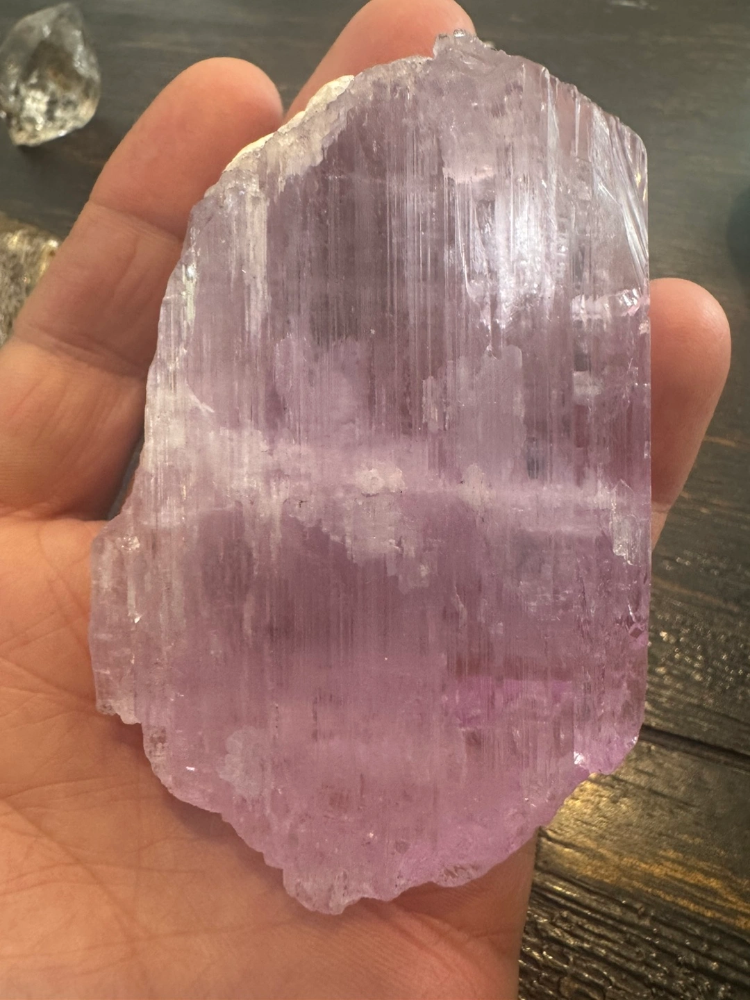 65Selling a raw Kunzite stone. It has a beautiful light purple colour and a unique texture. Perfect for collectors or anyone interested in crystals and minerals