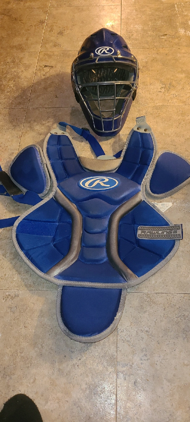 Complete set of Rawlings catcher's gear in blue. Includes a helmet, chest protector, and leg guards. Great for baseball or softball! *needs to be cleaned* ♡$299.00 OBO♡ *pick up only, but may be able to deliver for a fee*