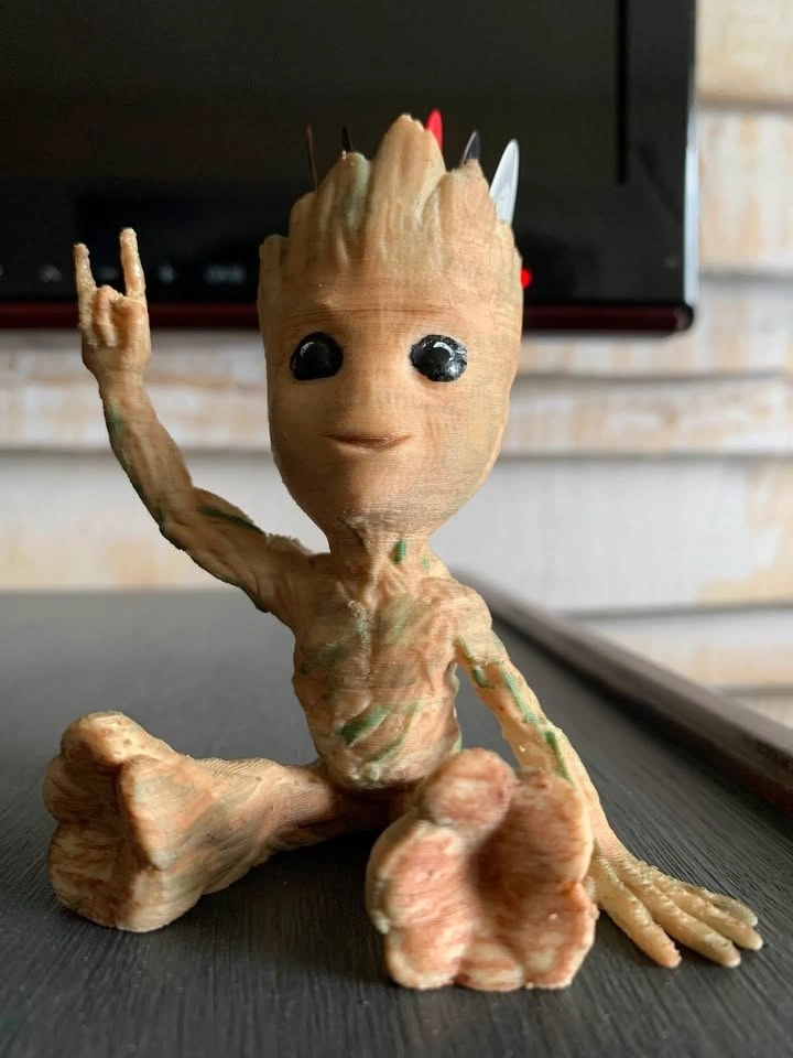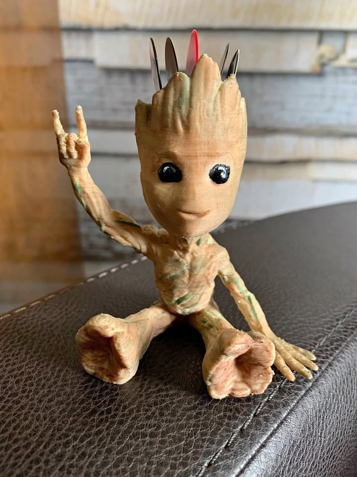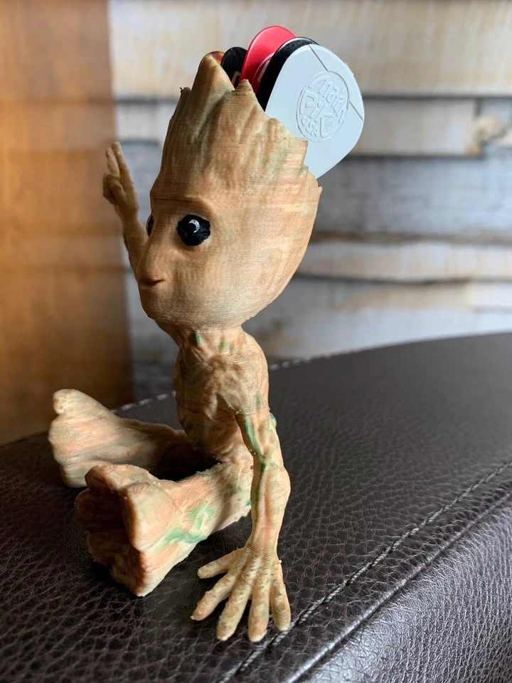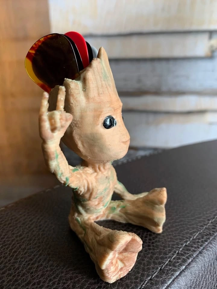 Groot loves to rock! Keep your guitar picks organized. Holds 5 picks. 3D printed with wood-filled material and painted.