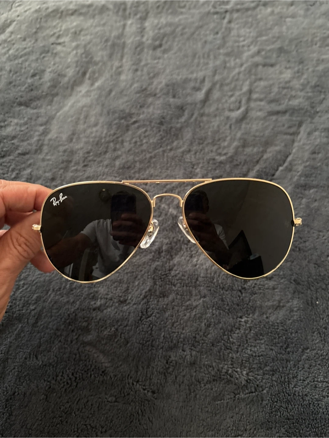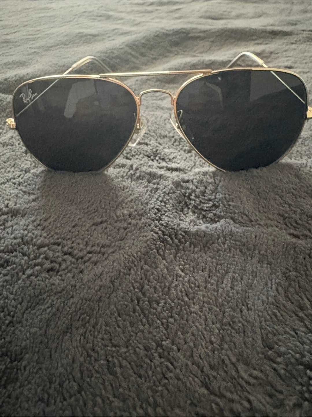 Selling a pair of Ray-Ban aviator sunglasses. They're in great condition and ready for a new home! L Size. New one costs $240