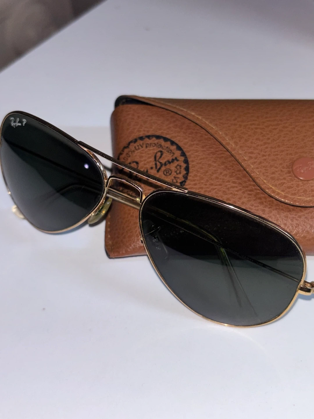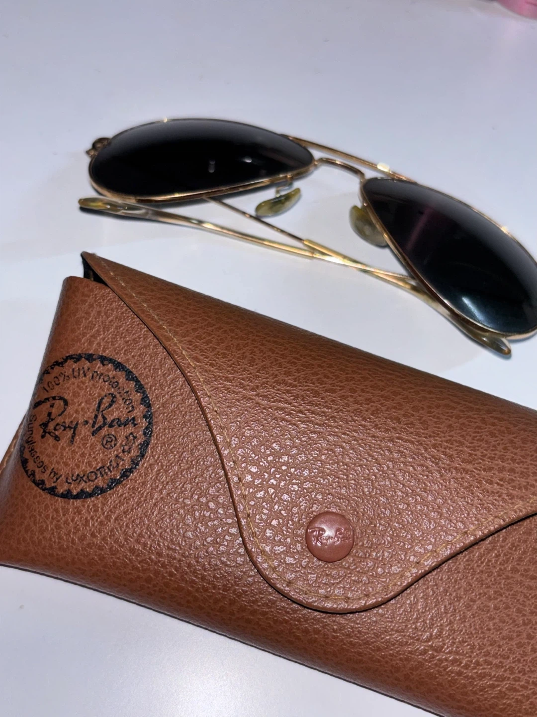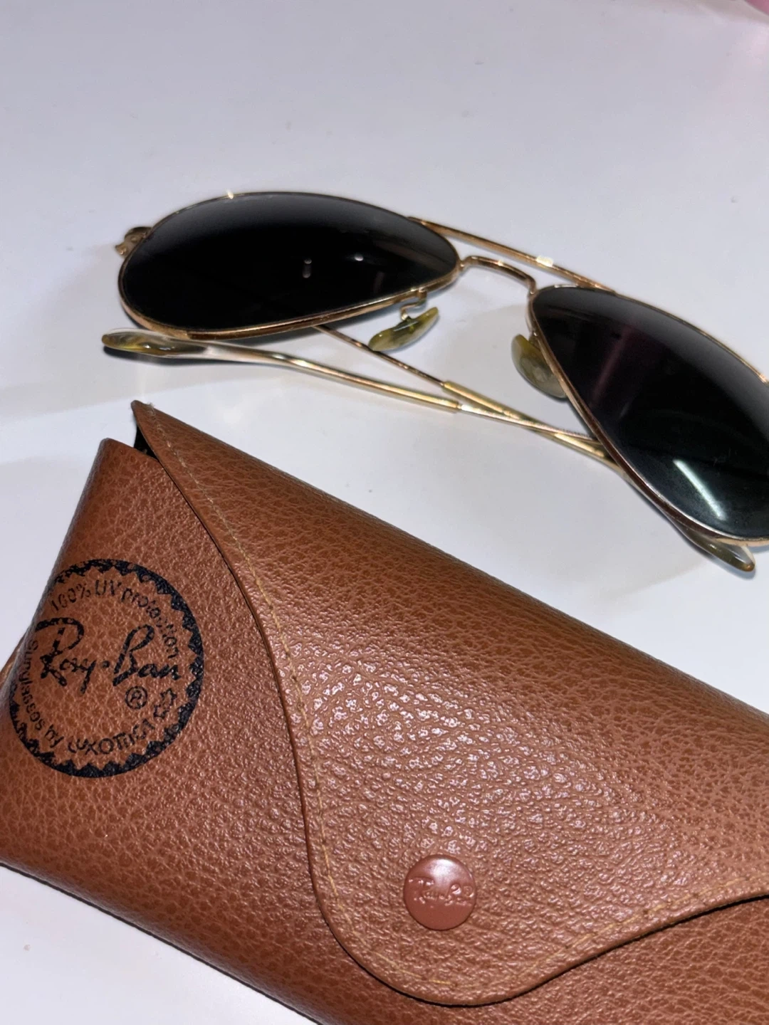 Selling a pair of Ray-Ban aviator sunglasses. They come with their original case, which is in great condition. The sunglasses themselves have a classic look and are ready for a new owner. Might need to be tightened as it’s always been loose for me.