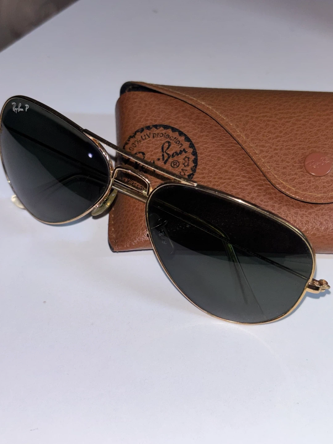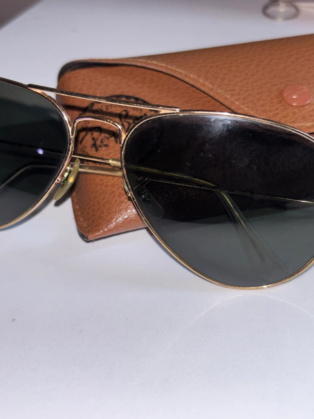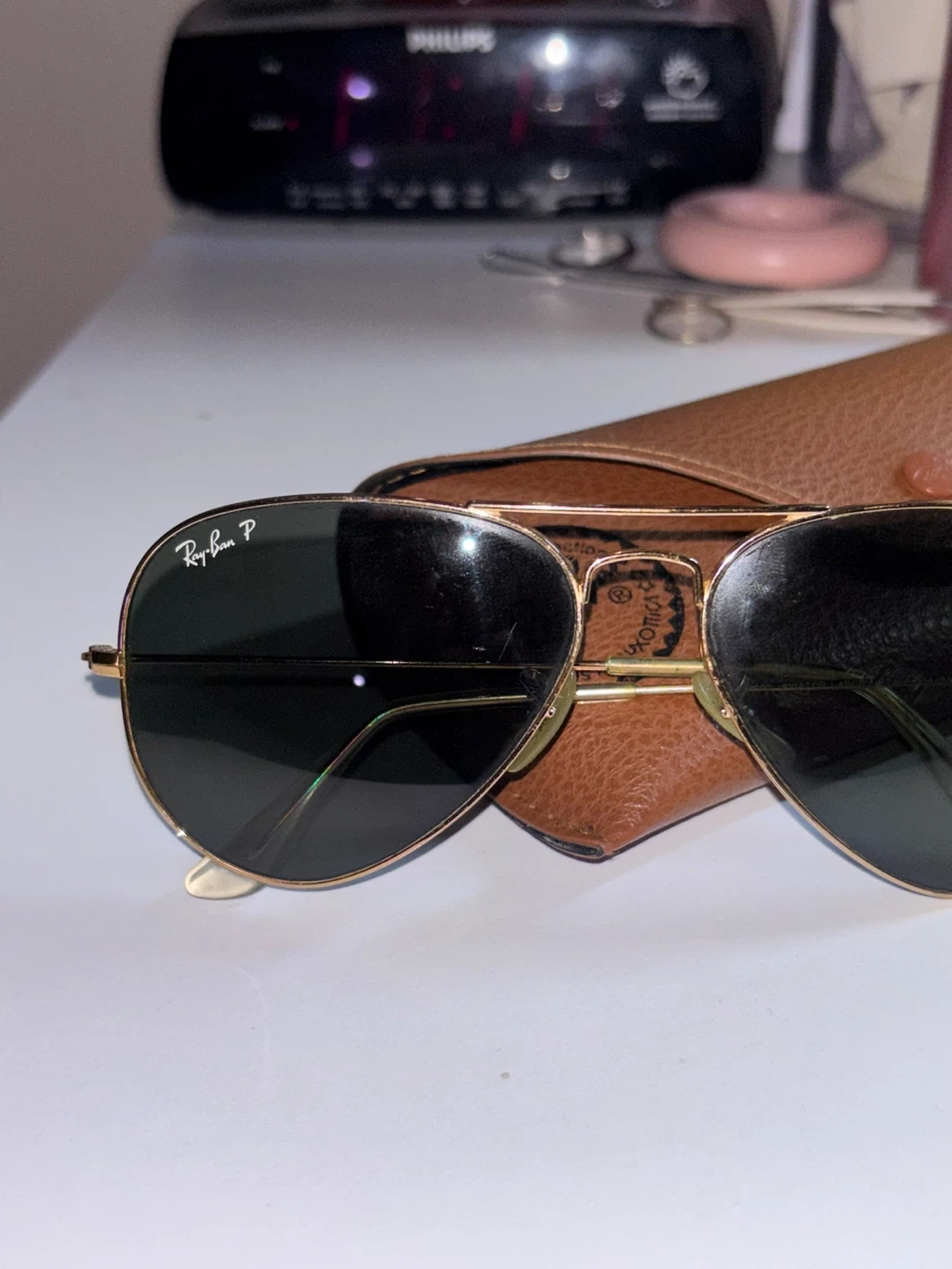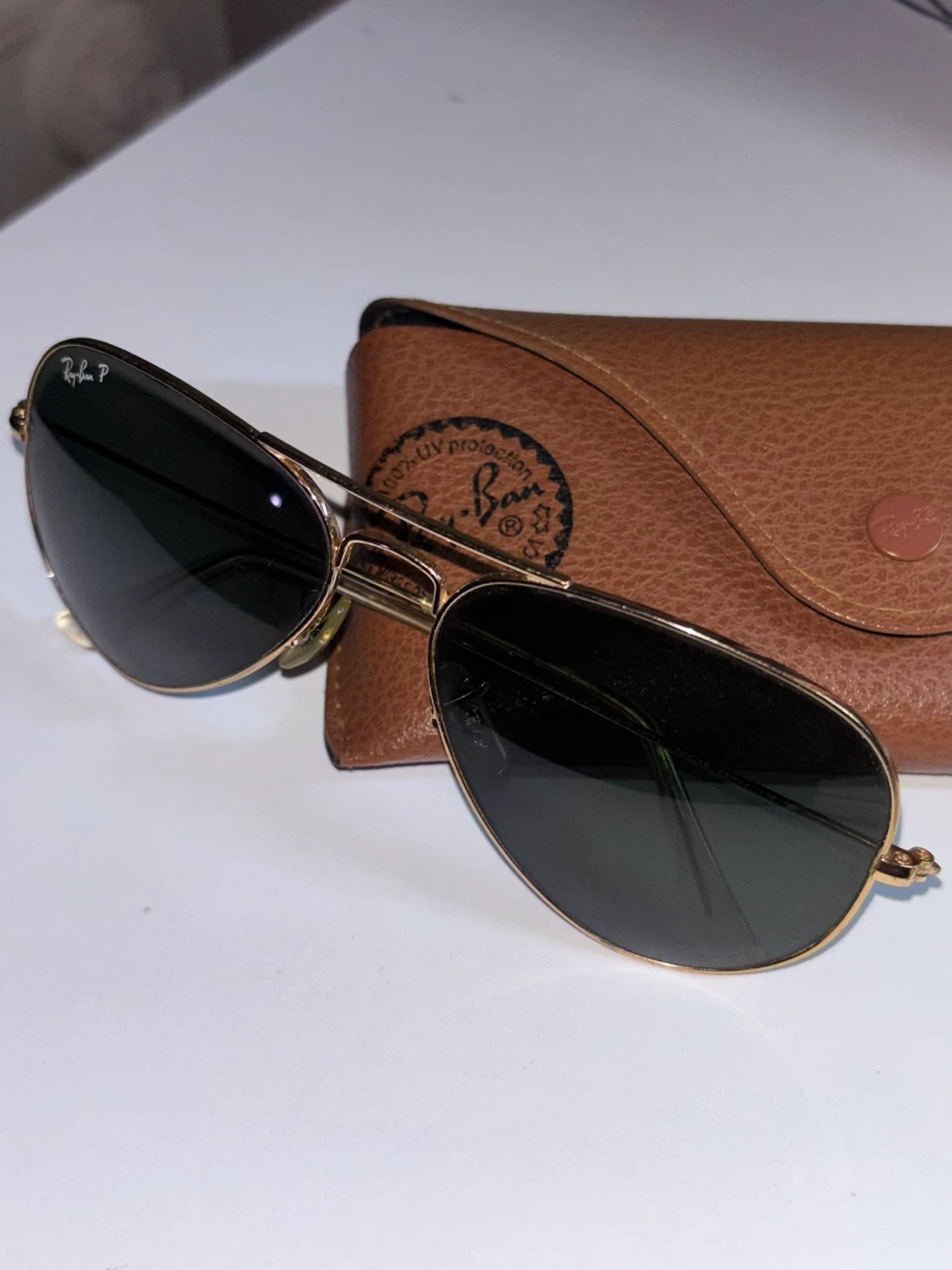 Selling a pair of Ray-Ban aviator sunglasses. They come with their original case, which is in great condition. The sunglasses themselves have a classic look and are ready for a new owner. Might need to be tightened as it’s always been loose for me.