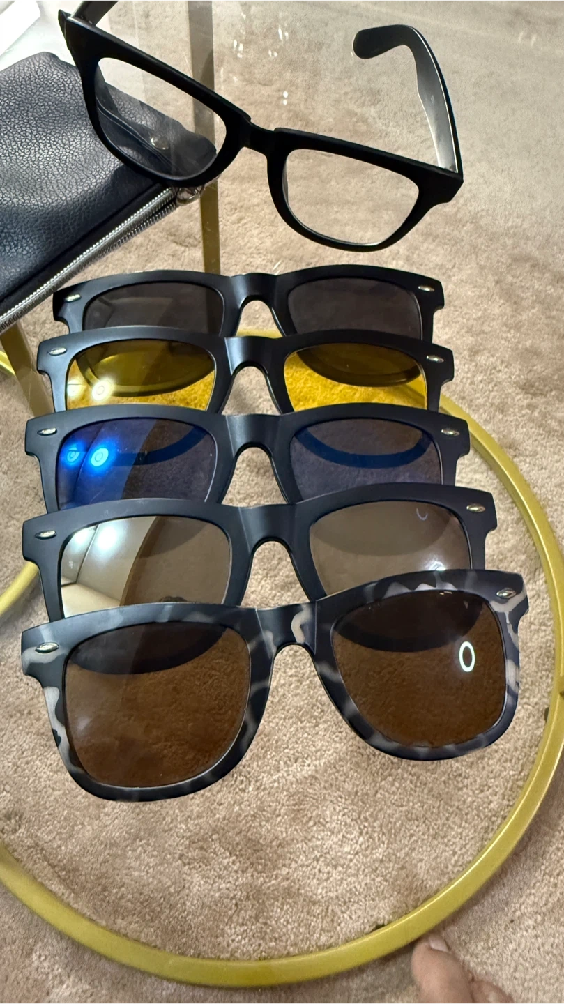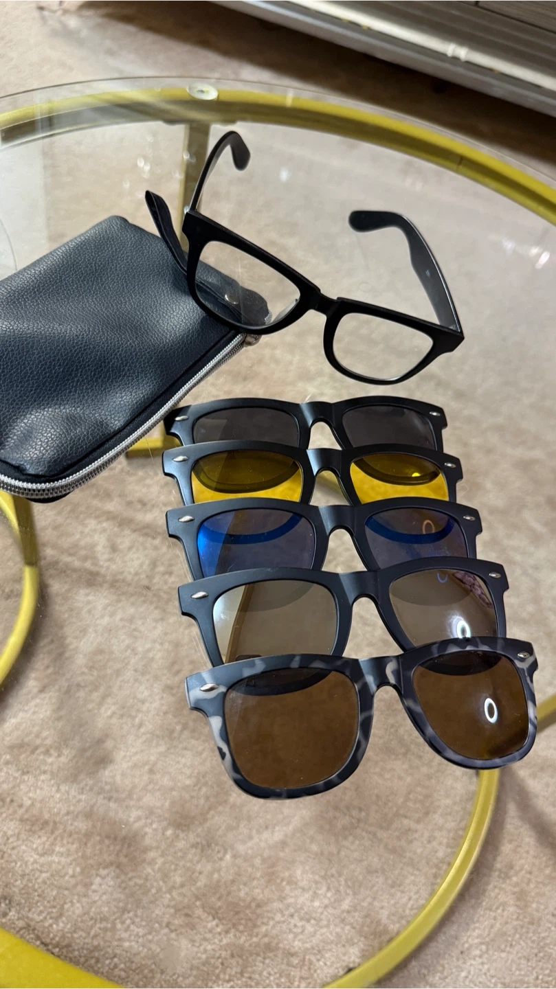 10Selling a set of clip-on sunglasses that easily attach to your existing glasses! Comes with a handy case to keep everything organized and protected. Great for switching up your look and protecting your eyes from the sun