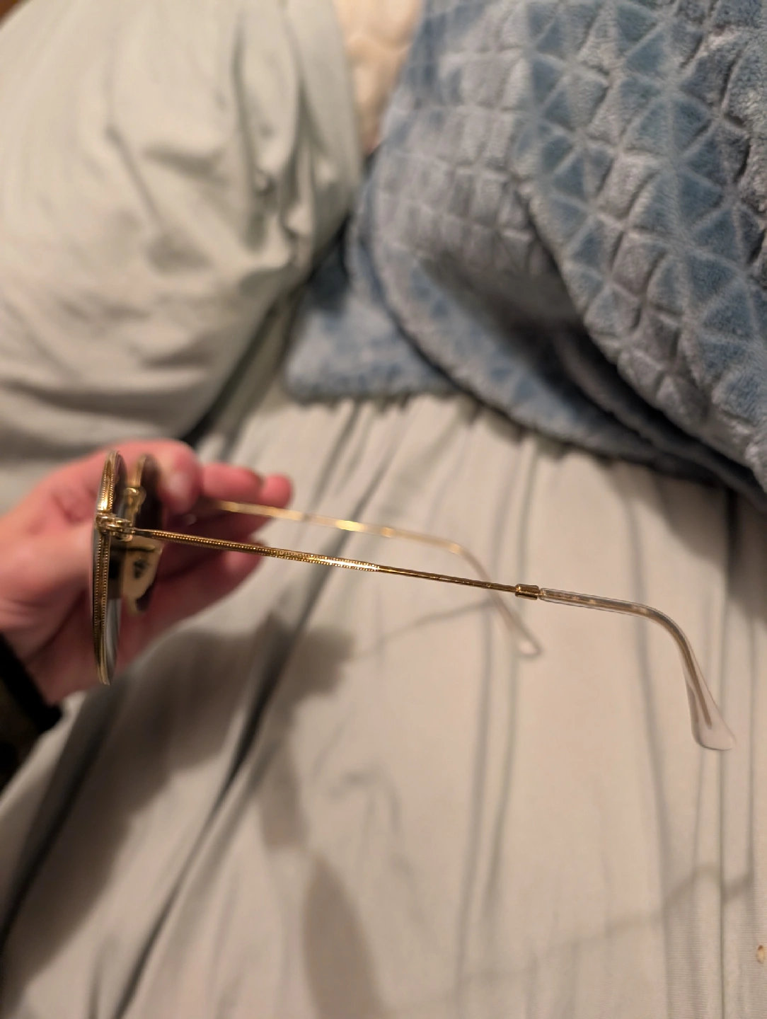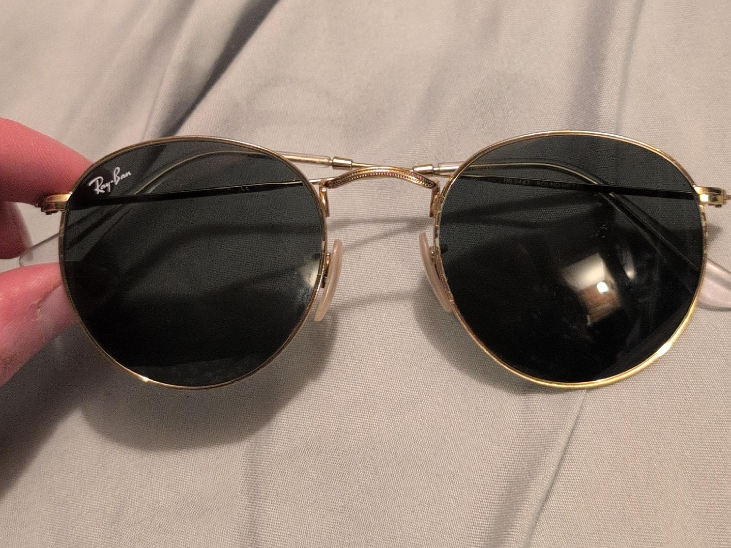 65Selling a pair of authentic Ray-Ban Round Metal sunglasses in gold! These classic shades are in great condition and ready for a new owner. They have the iconic round lenses and a lightweight metal frame. Perfect for adding a touch of retro style to any outfit