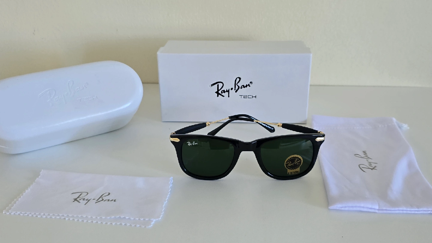 Selling a pair of Ray-Ban Tech sunglasses in black! They come with the original box, case, and cleaning cloth. Stylish and in great condition!