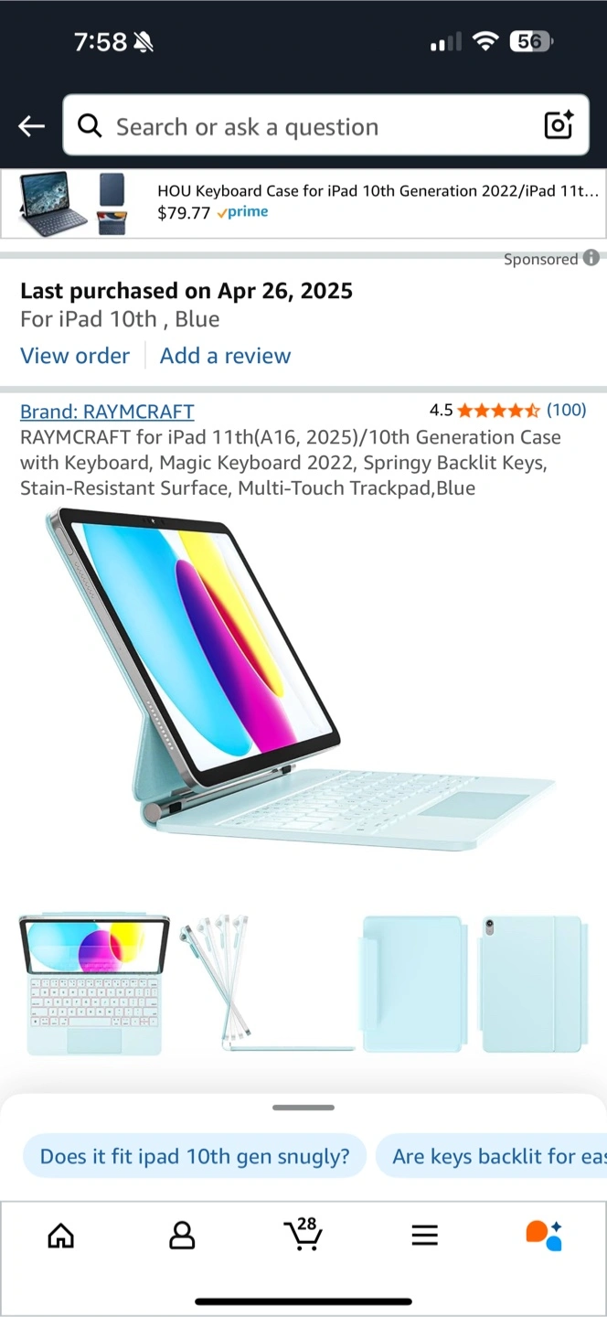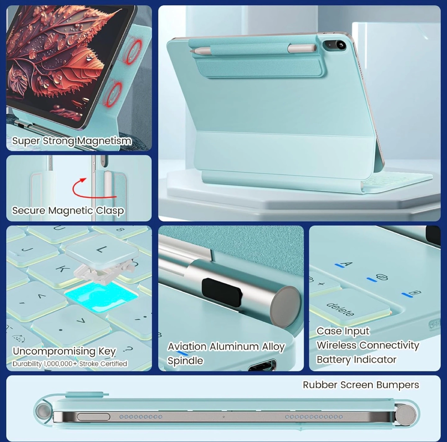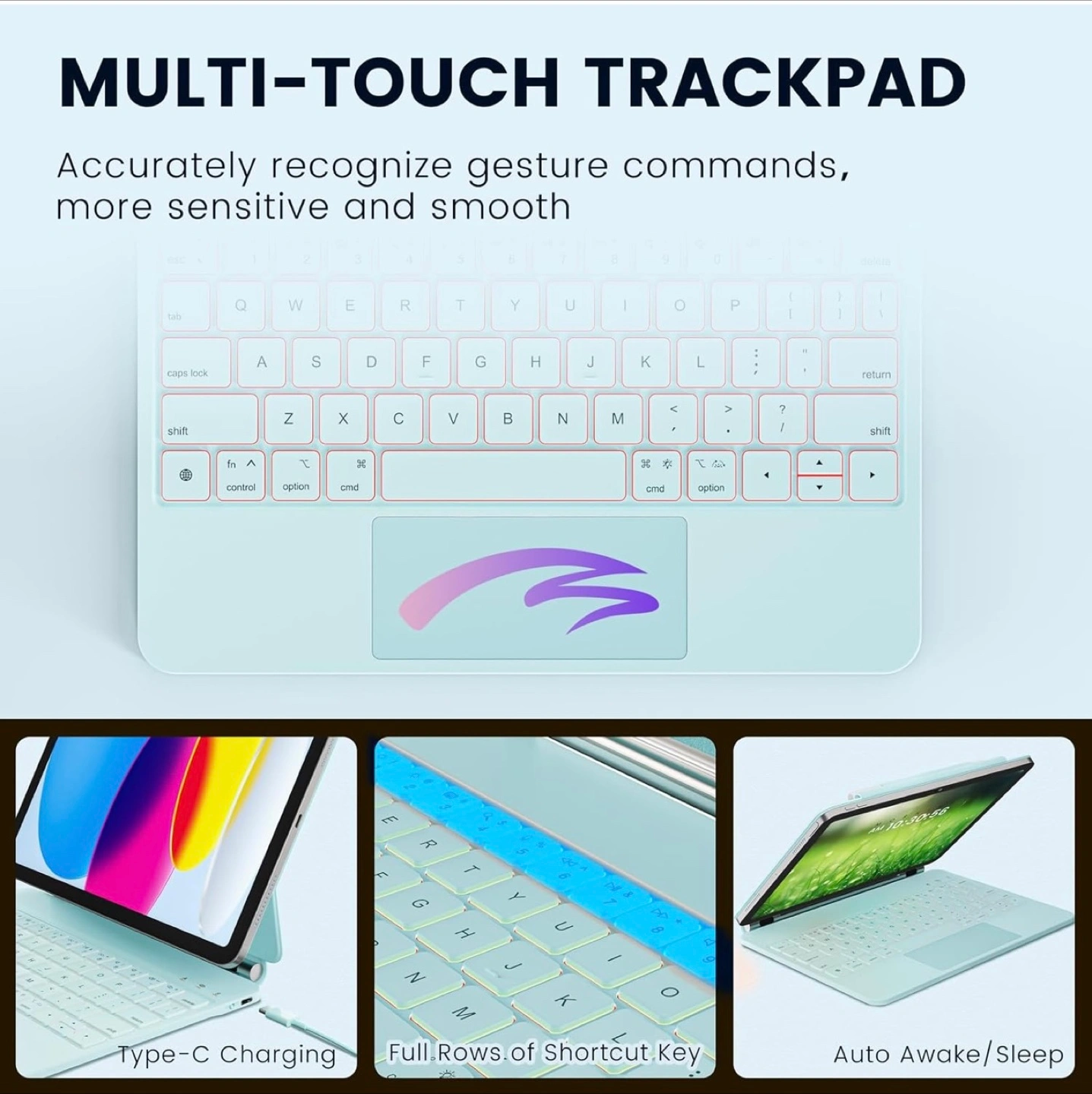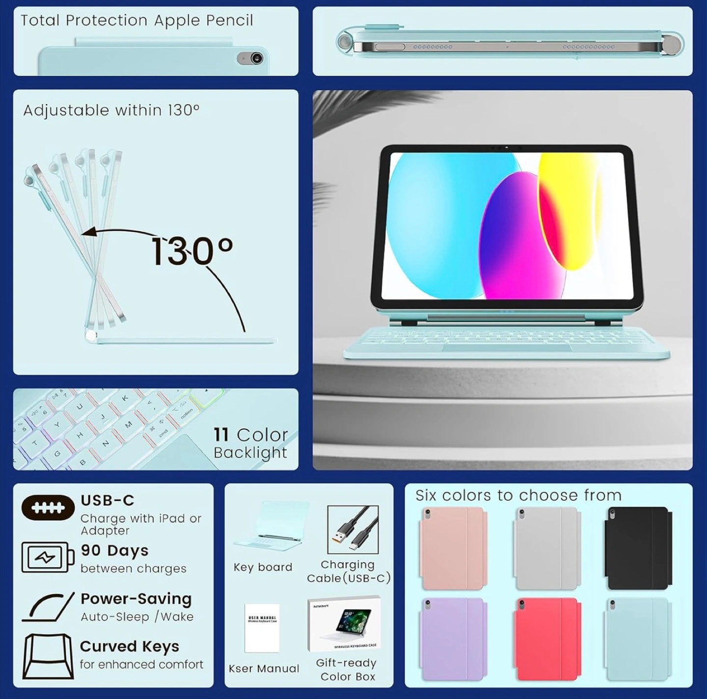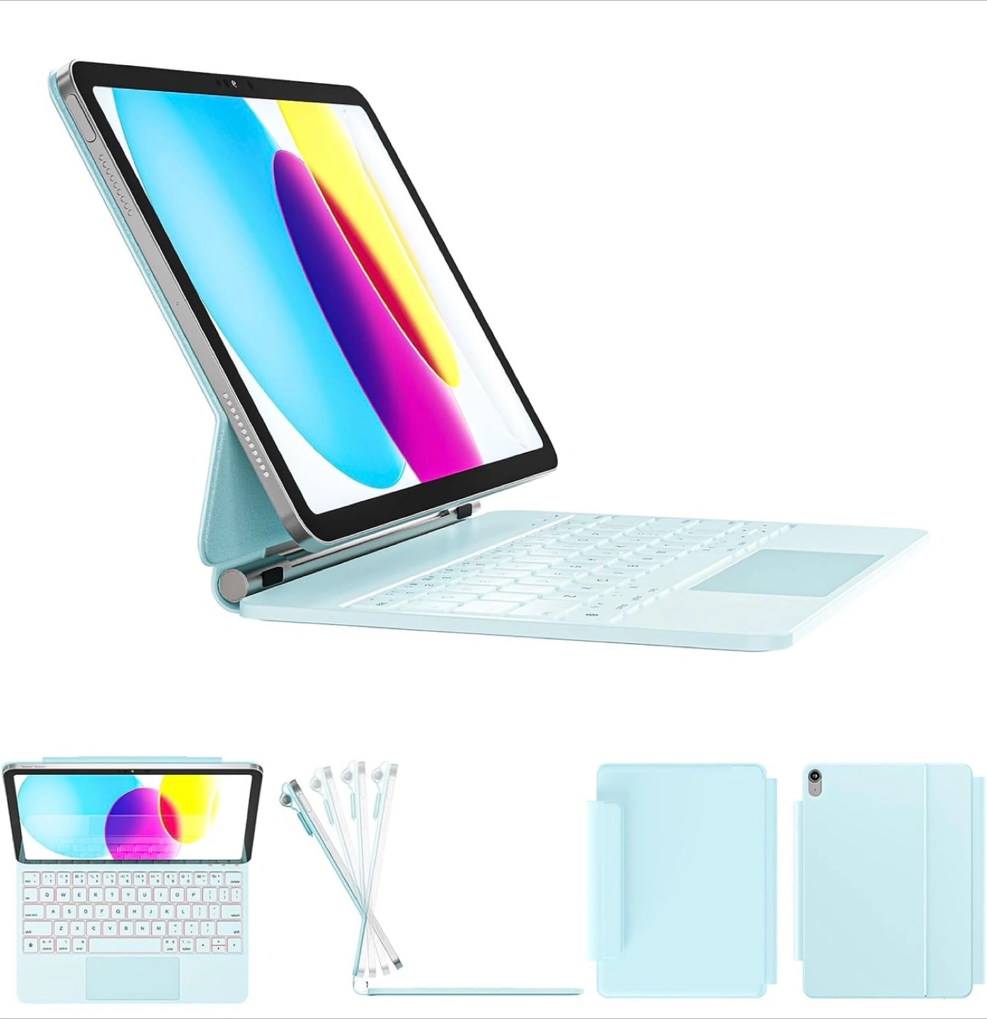 267Wireless keyboard case, blue. Compatible with iPad 10th generation. Includes keyboard and case. New, in box. Selling price 120$ Regular price 140$ (before tax) Sealed box never opened