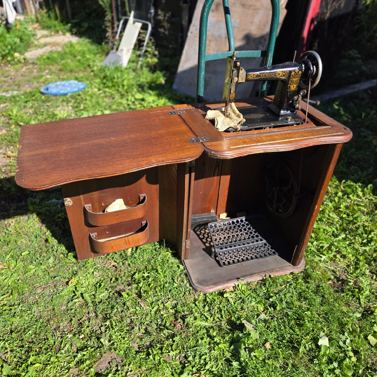 Raymond treadle cabinet sewing machine as is.