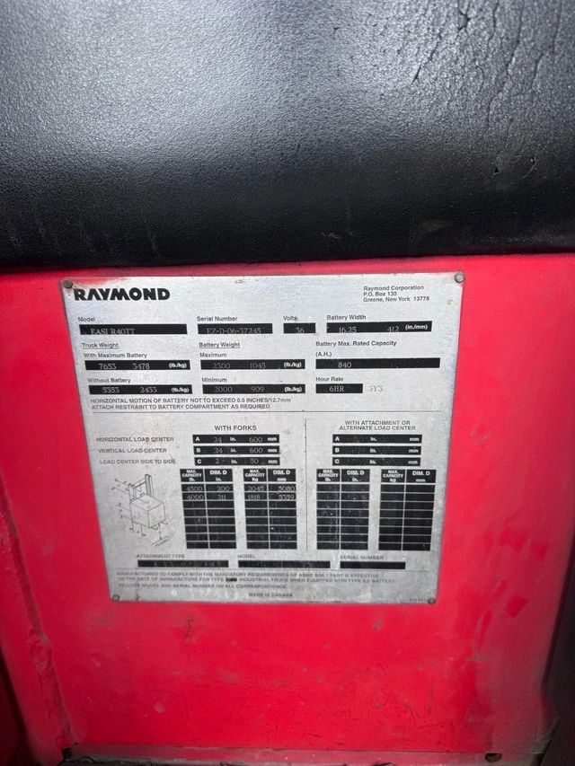 Raymond Reach Forklift EASIR40TT 4500lb + Charger