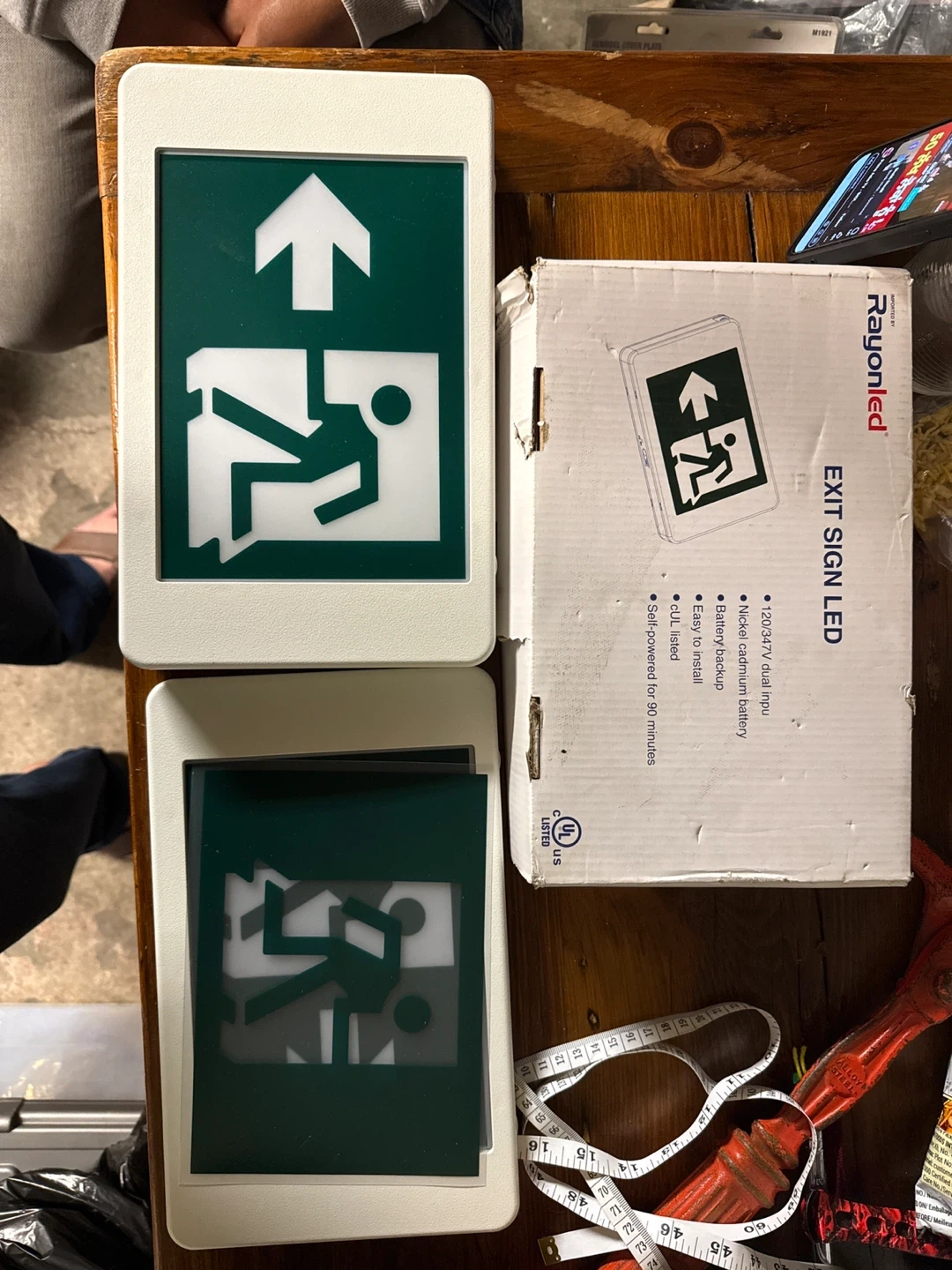 107Selling a Rayonled Exit Sign LED, brand new and still in its original box! This LED exit sign features: - 120-347V dual input - Battery backup with nickel cadmium battery - Easy to install - CUL listed - Self-powered for 90 minutes Perfect for ensuring safety and compliance in any building