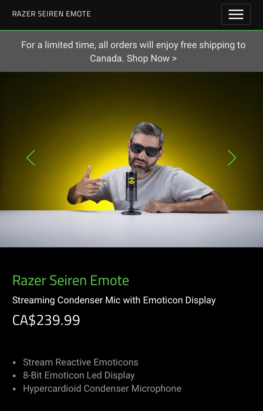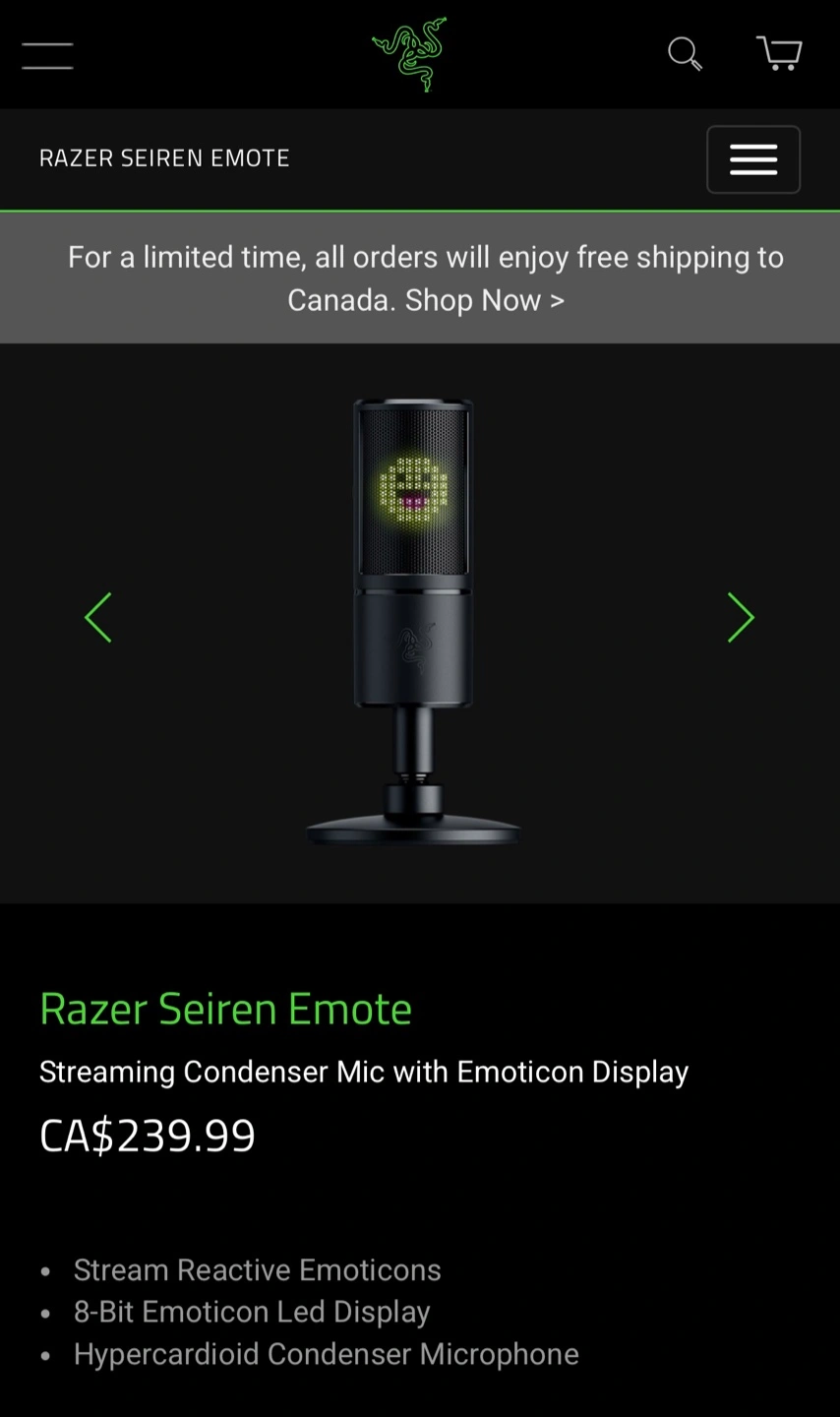 Razer Seiren Emote - USB Microphone for Streaming - with Emoticon Display. New ! Sealed Box. $105 Reg. Price $240 +HST