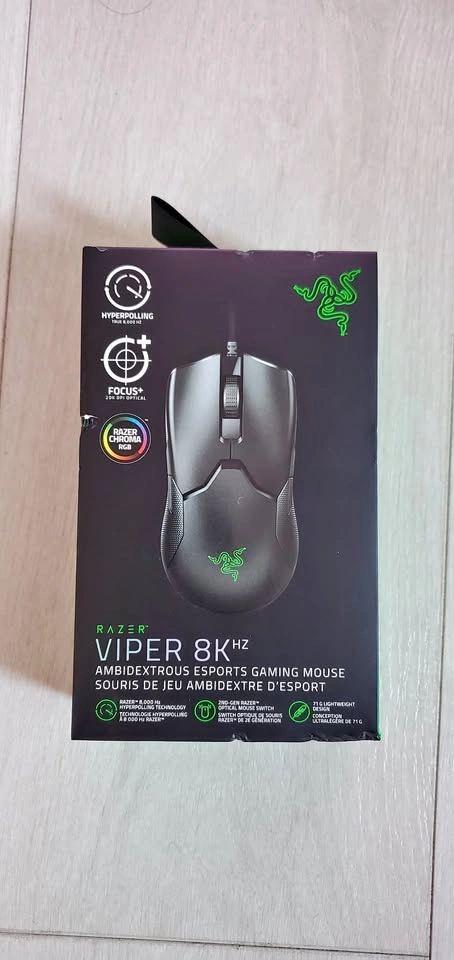 10Selling a Razer Viper 8KHz esports gaming mouse. 8,000Hz hyperpolling (fastest response for competitive gaming) 20K DPI optical sensor with Razer Focus+ technology 2nd-gen optical switches for durability & speed 71g lightweight ambidextrous design (good for left or right-handed players) Razer Chroma RGB customizable lighting Perfect for esports, FPS, and competitive gamers who want zero input lag. Condition: new/sealed Price: $75 (retails $80–$90)