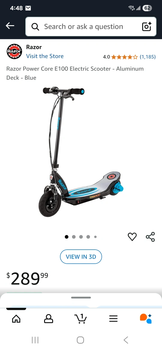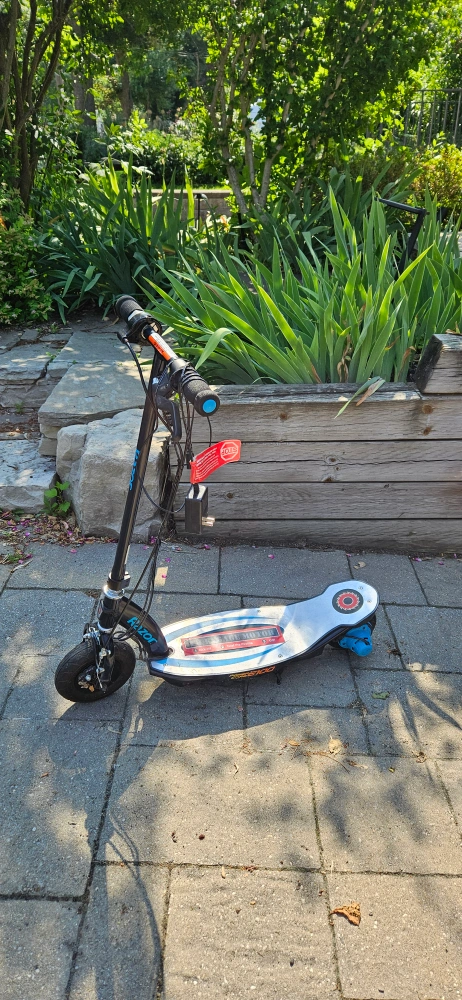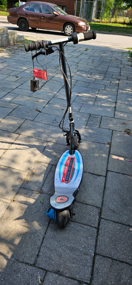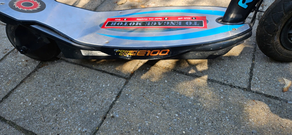 Selling a Razor Power Core E100 electric scooter. It comes with a charger. This scooter is perfect for kids who want to have some fun outdoors! Currently not working -- I think it needs a new battery, which can be found on Amazon for $50