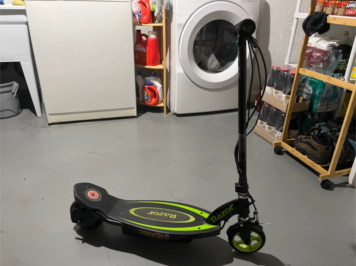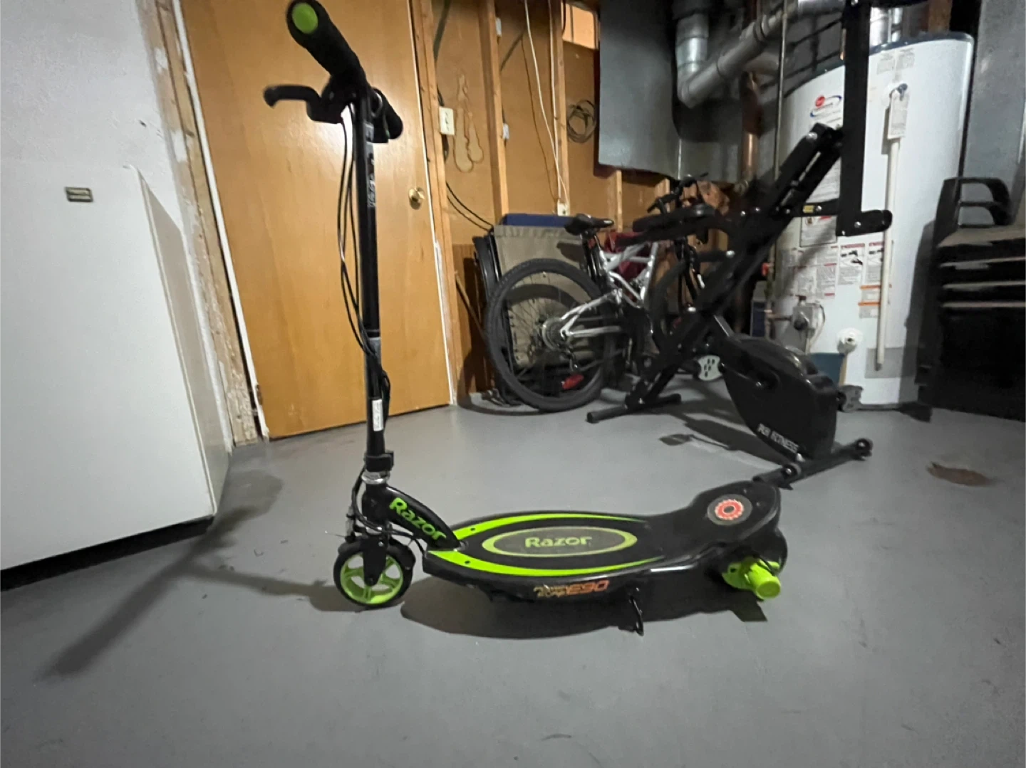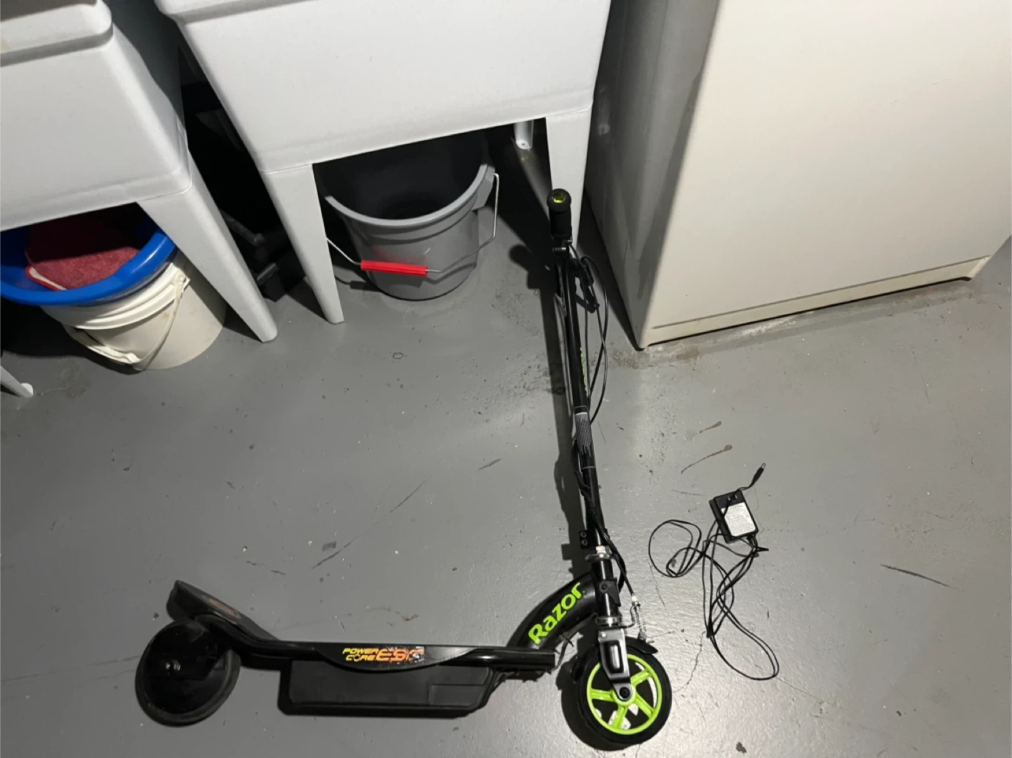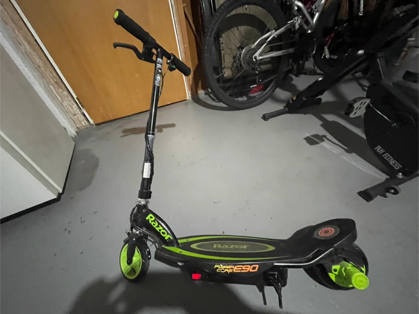 Selling a Razor Power Core E90 electric scooter! It's in good condition and ready for some fun rides. The scooter is black with green accents, giving it a cool look. Perfect for kids who want to zip around the neighbourhood Cash only Comes with charger