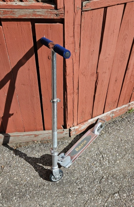 38Selling a Razor scooter in silver! It's perfect for getting around the neighbourhood or just having some fun. It's in good condition and ready for a new home. Great for kids and adults alike!