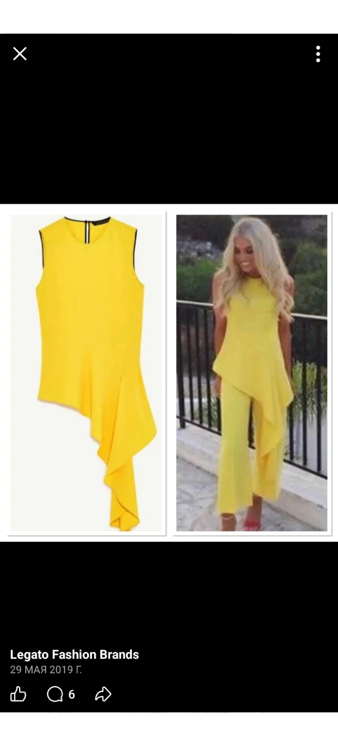 This is a ZARA WOMAN sleeveless yellow top. It features an asymmetrical hem with a dramatic ruffle detail. Made in Morocco. Great for dressing up or down!