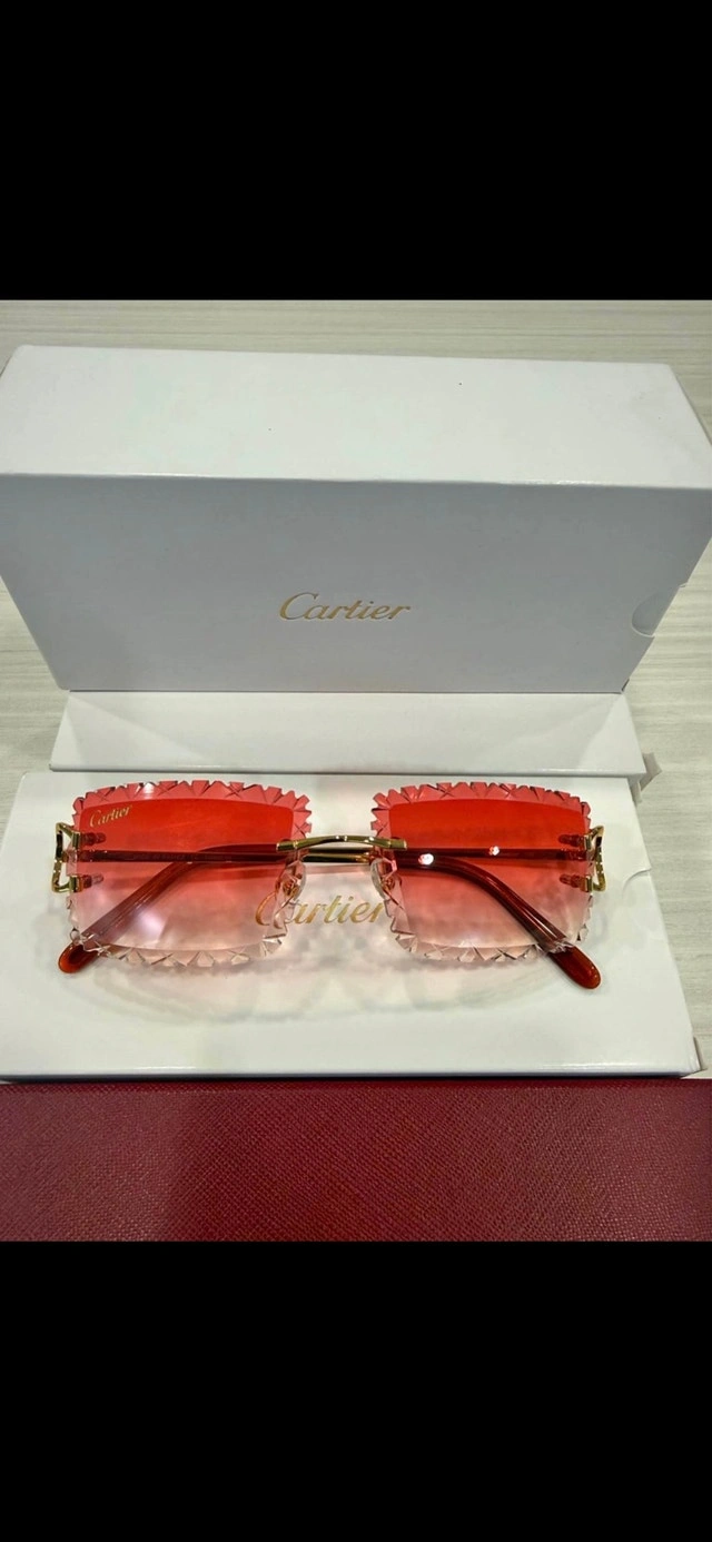 Cartier Big C Frames in Gold featuring Cherry Tinted X Diamond Cut Lenses. Comes with Cartier Case, Booklet and Certificate of Authenticity.