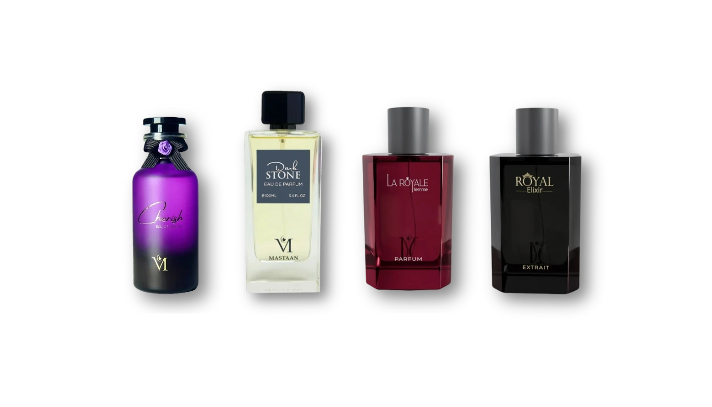 Four distinct perfumes for your collection. Includes Cherish Eau de Parfum, Dark Stone Eau de Parfum, La Royale Femme Parfum, and Royal Elixir Extrait. All bottles are 100ml or 3.4 fl oz. A lovely set for any fragrance enthusiast!