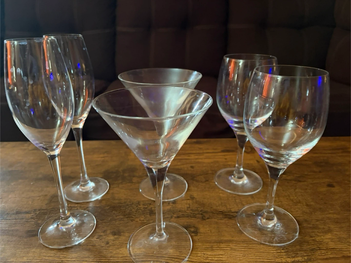 Selling a mixed set of wine glasses. Includes a variety of styles, perfect for different types of wine or cocktails. Great for adding a touch of elegance to your home bar or dinner parties.