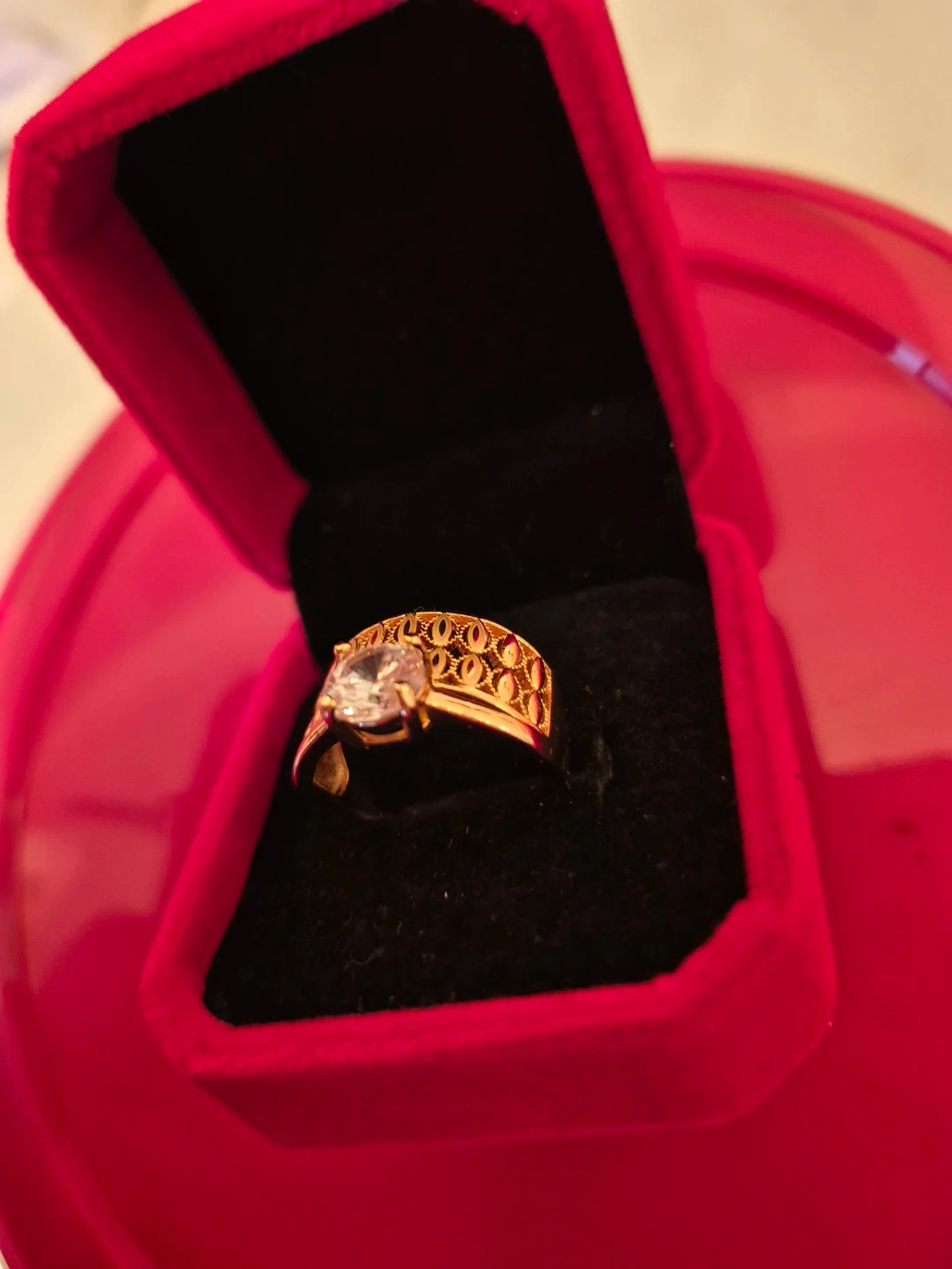 Selling a beautiful gold ring with a clear stone. It's in great condition and ready to wear! Perfect for adding a touch of elegance to any outfit