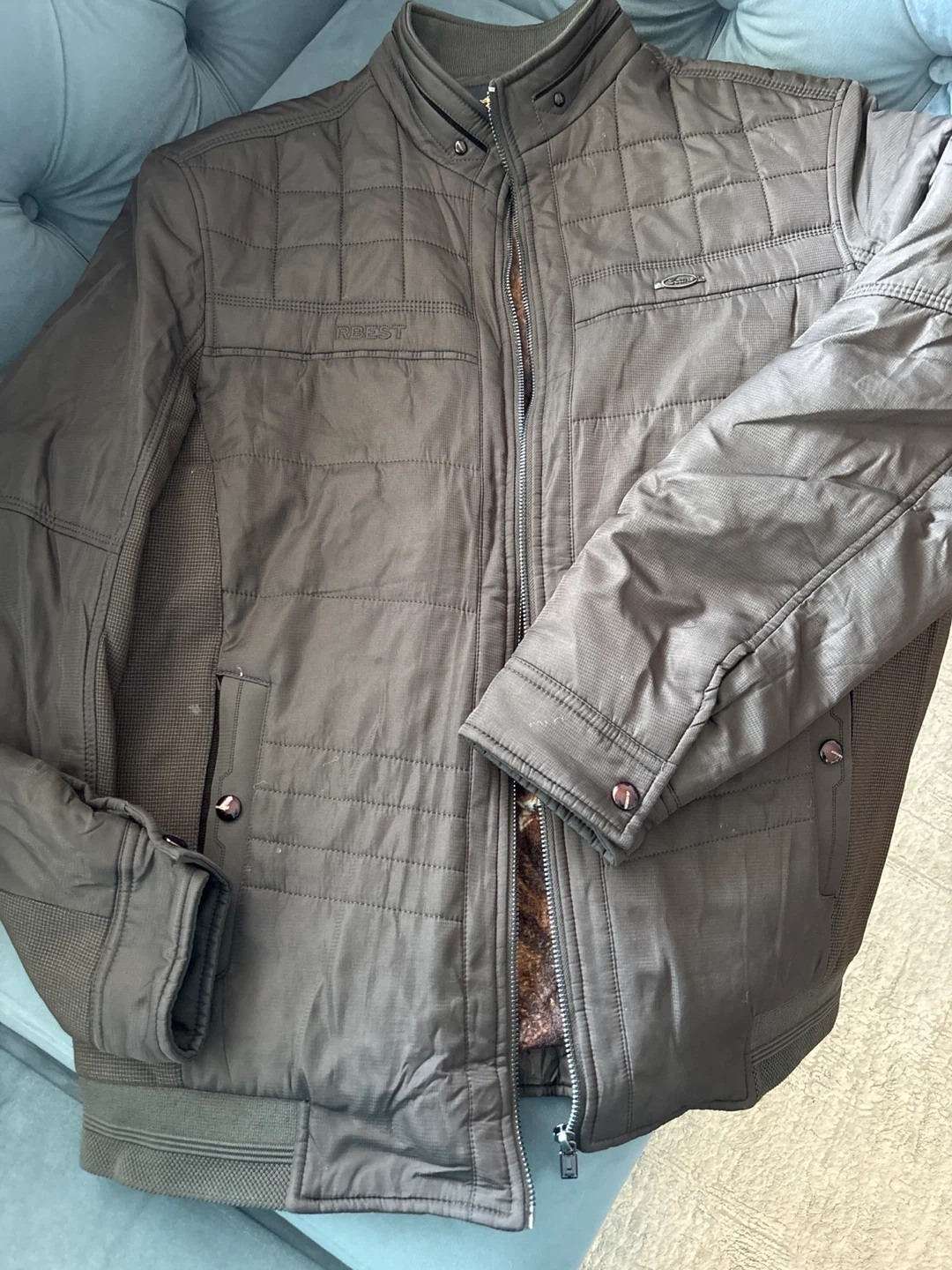 Selling a gently used RBest brown quilted jacket. It features a zippered front and a stylish quilted design. Perfect for cooler weather!