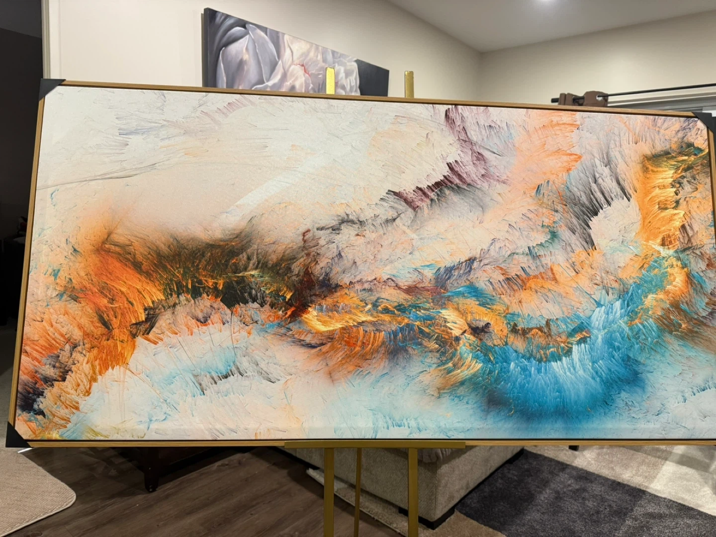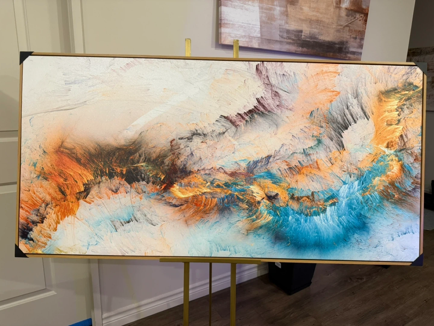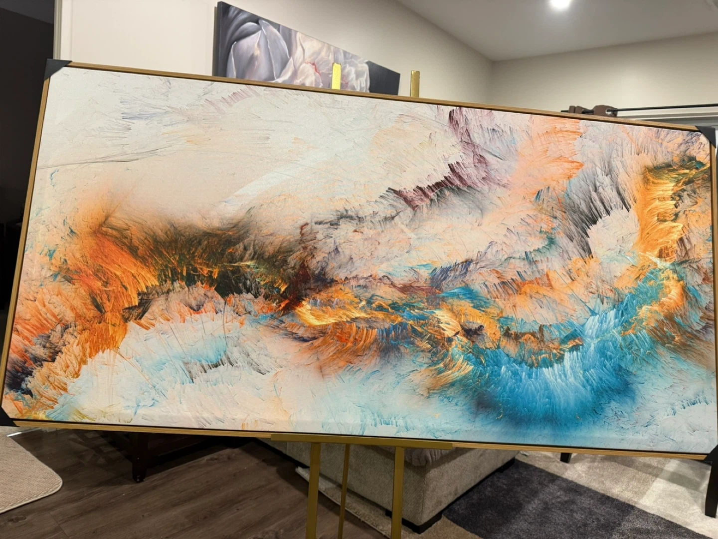 Selling a beautiful abstract canvas painting. The colours are vibrant and would look great in any room! It's in excellent condition and ready to hang
