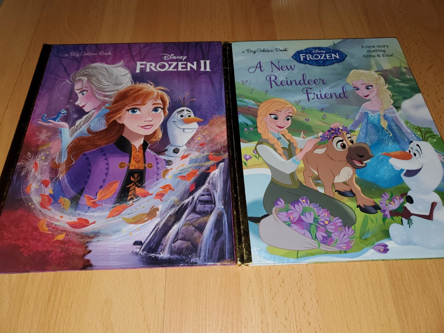 One is titled 'A New Reindeer Friend' and the other is based on 'Frozen II'. These books are great for young fans of the movies.