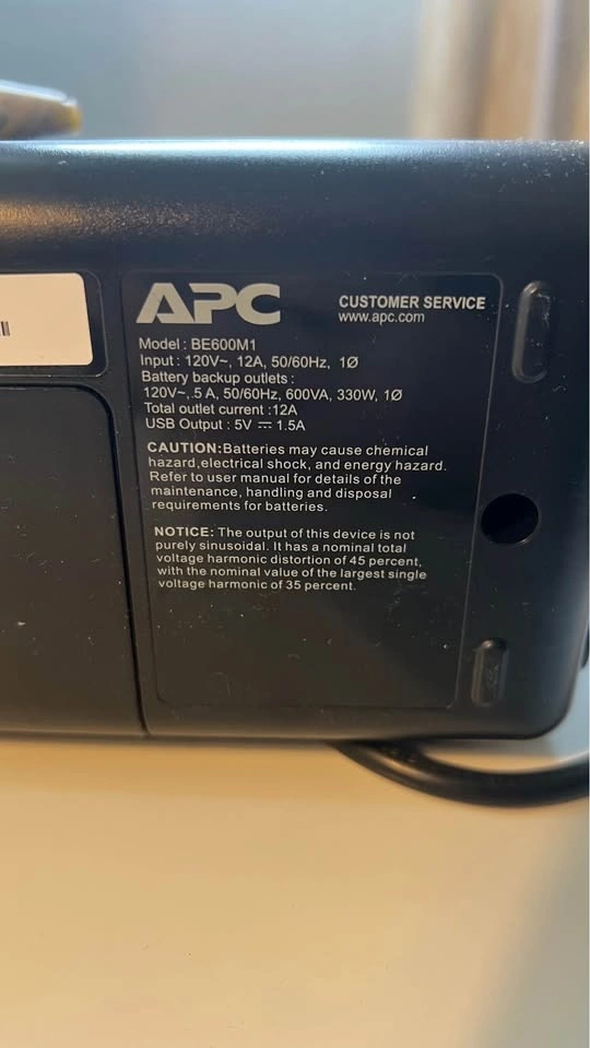 Selling an APC Back-UPS 600VA (Model BE600M1) in excellent condition. This is a must-have for protecting your electronics (PC, Router, Gaming Console) from power surges and keeping them running during a blackout.