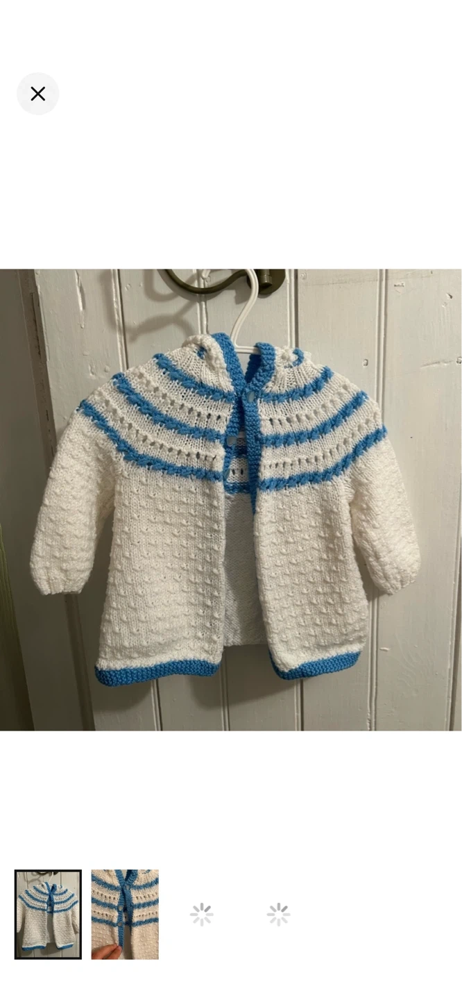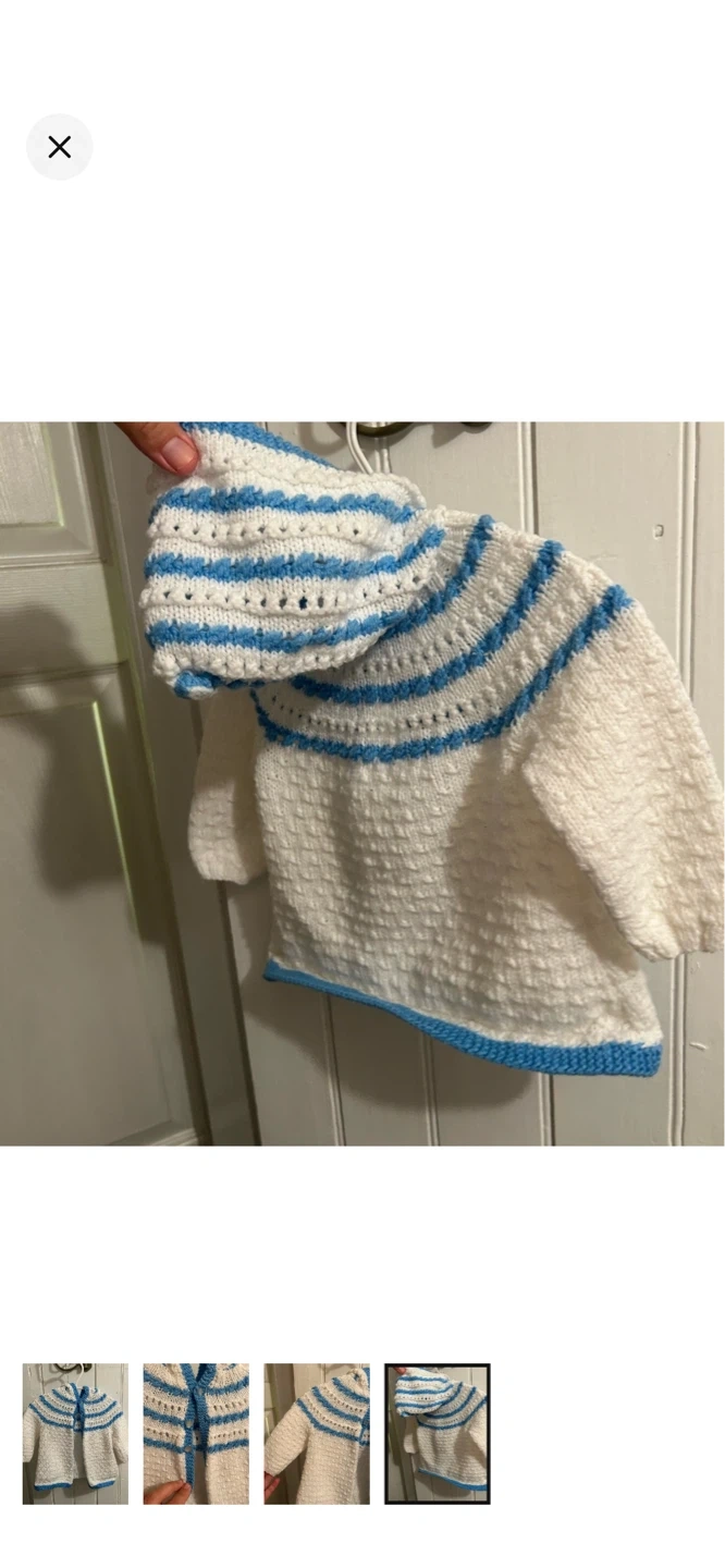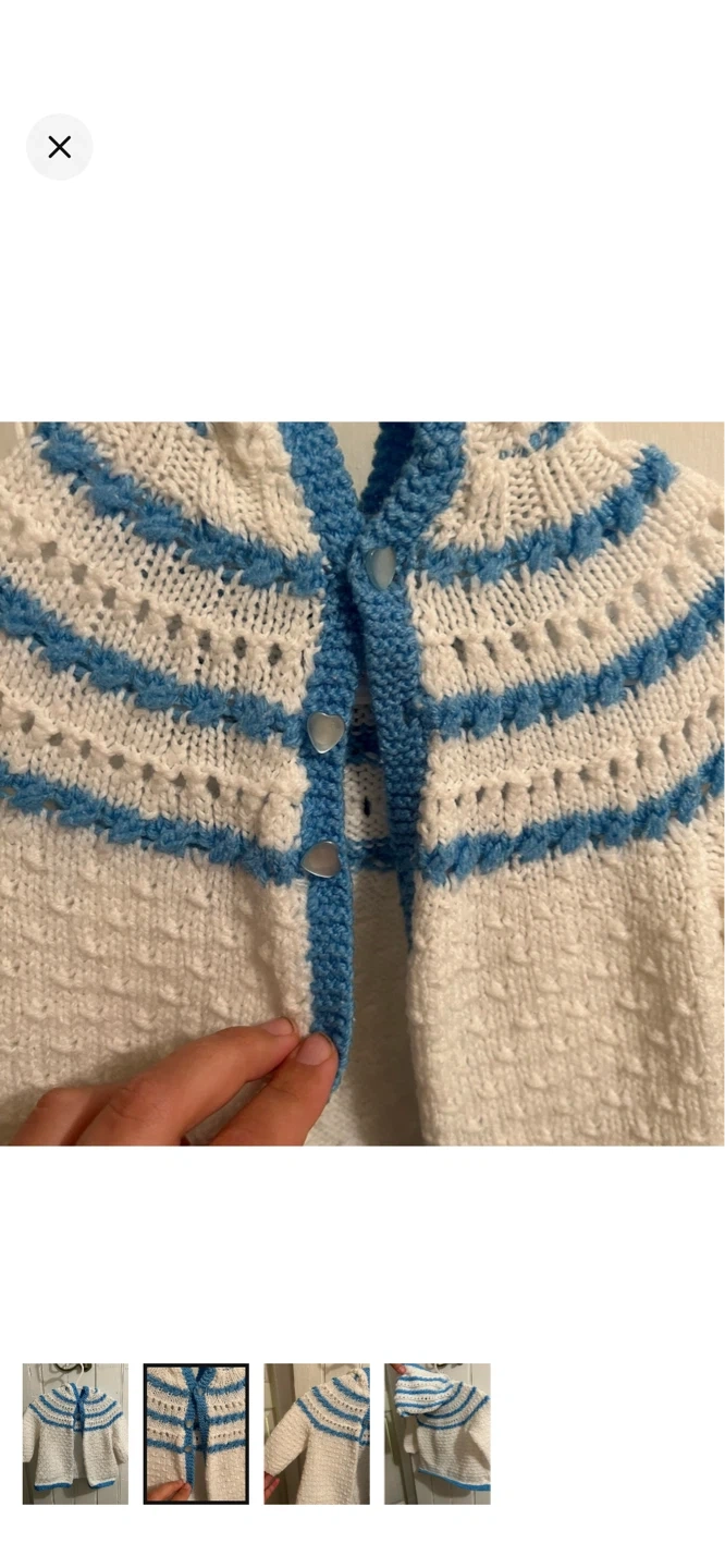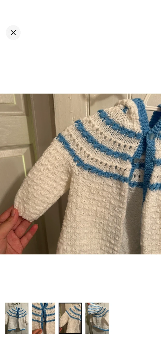 Handmade. Button up hooded knit cardigan. White with blue stripes. Approx size 12m. Brand new condition $10