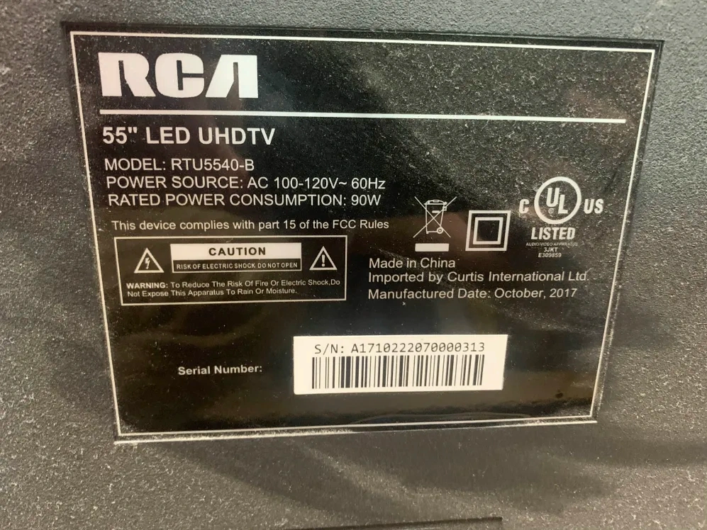 1055" LED UHDTV MODEL: RTU5540-B *Do not come with leg stands 1 With Remote 2 With no Remote (Can be connected with a universal remote)