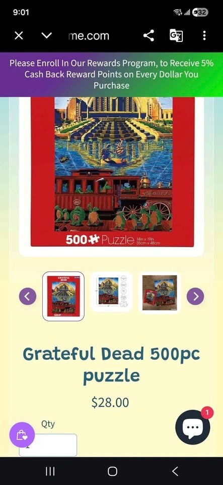 New Grateful Dead puzzle featuring the Terrapin Station album art. It has 500 pieces and is made by Aquarius. The finished puzzle measures 14in x 19in (35cm x 48cm). It is still sealed in plastic and has never been opened. Officially licensed merchandise.