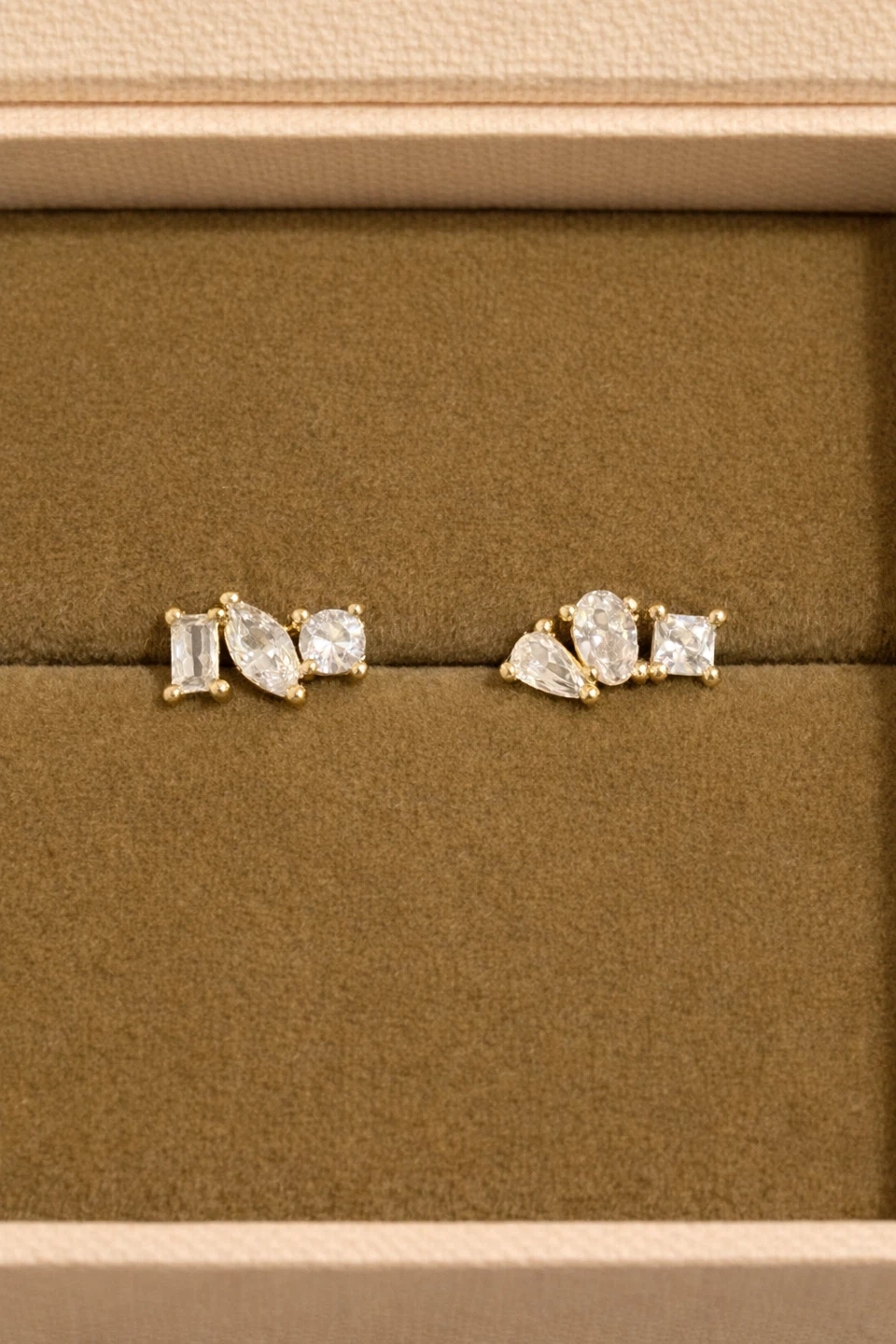 A modern classic with understated elegance. The Gigi Asymmetrical Studs feature a refined mismatched design with soft, luminous sparkle — minimal yet distinctive.