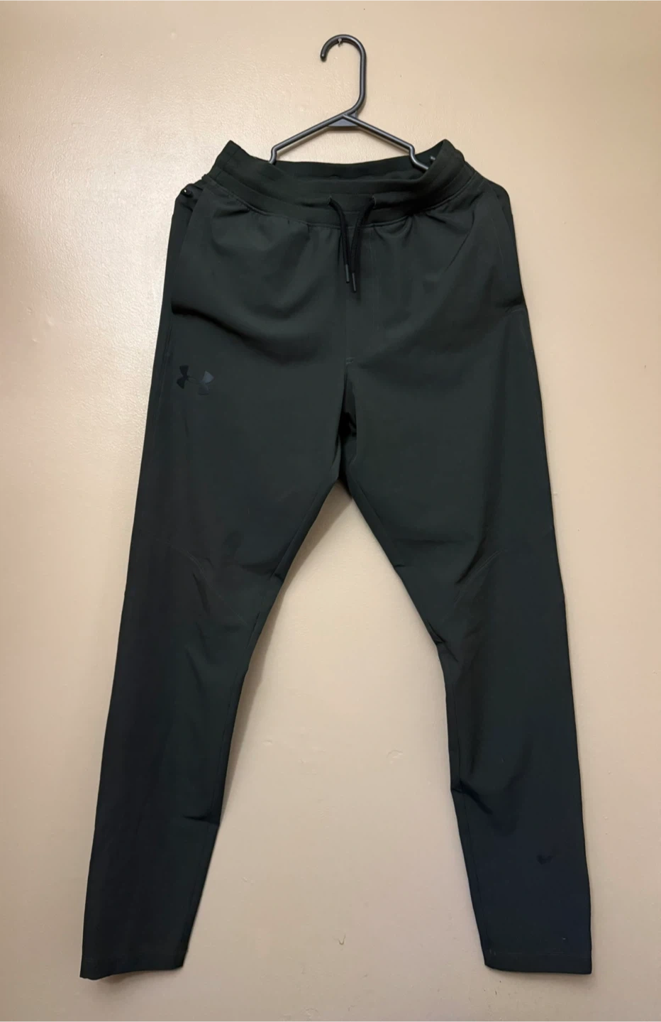 Get your hands on these gently used green Under Armour pants, perfect for workouts or casual wear! These pants are a size small and are suitable for boys or men. I'm selling them because they no longer fit. Despite being used, they are in good condition, ready for a new owner. Here are some features: