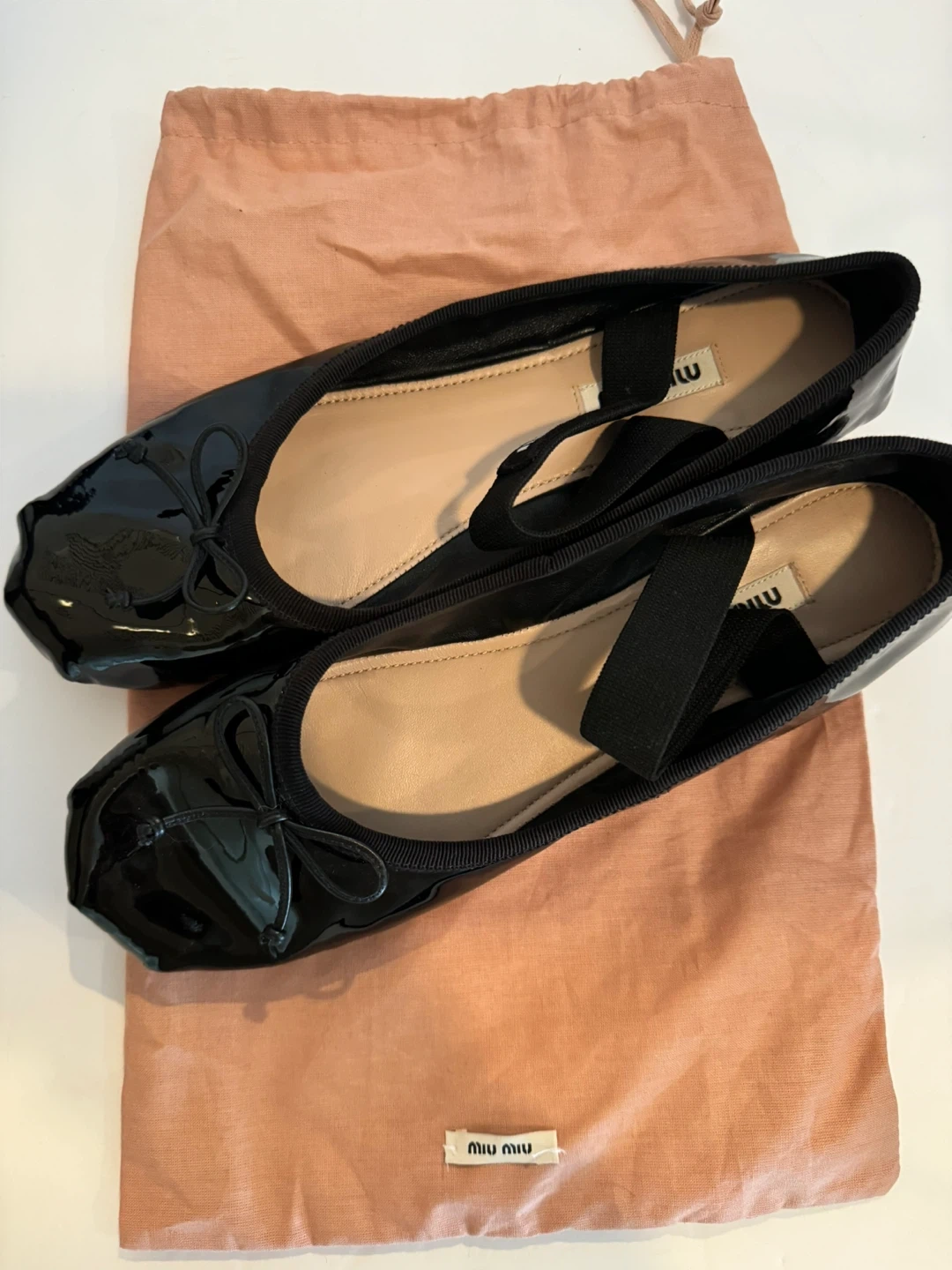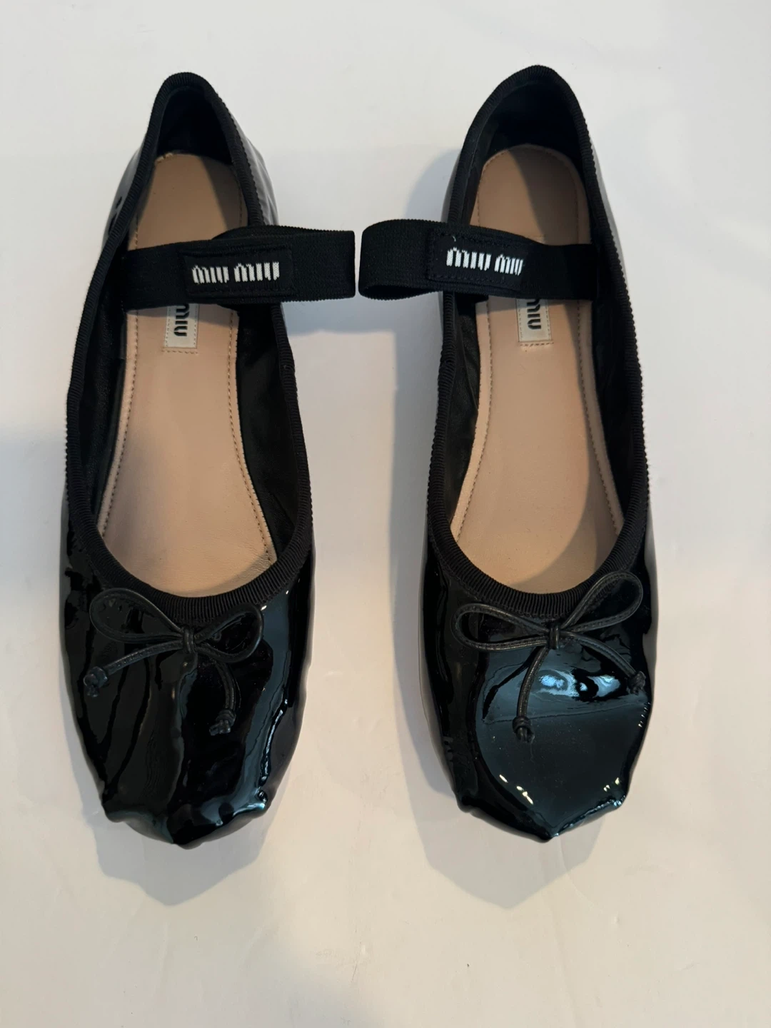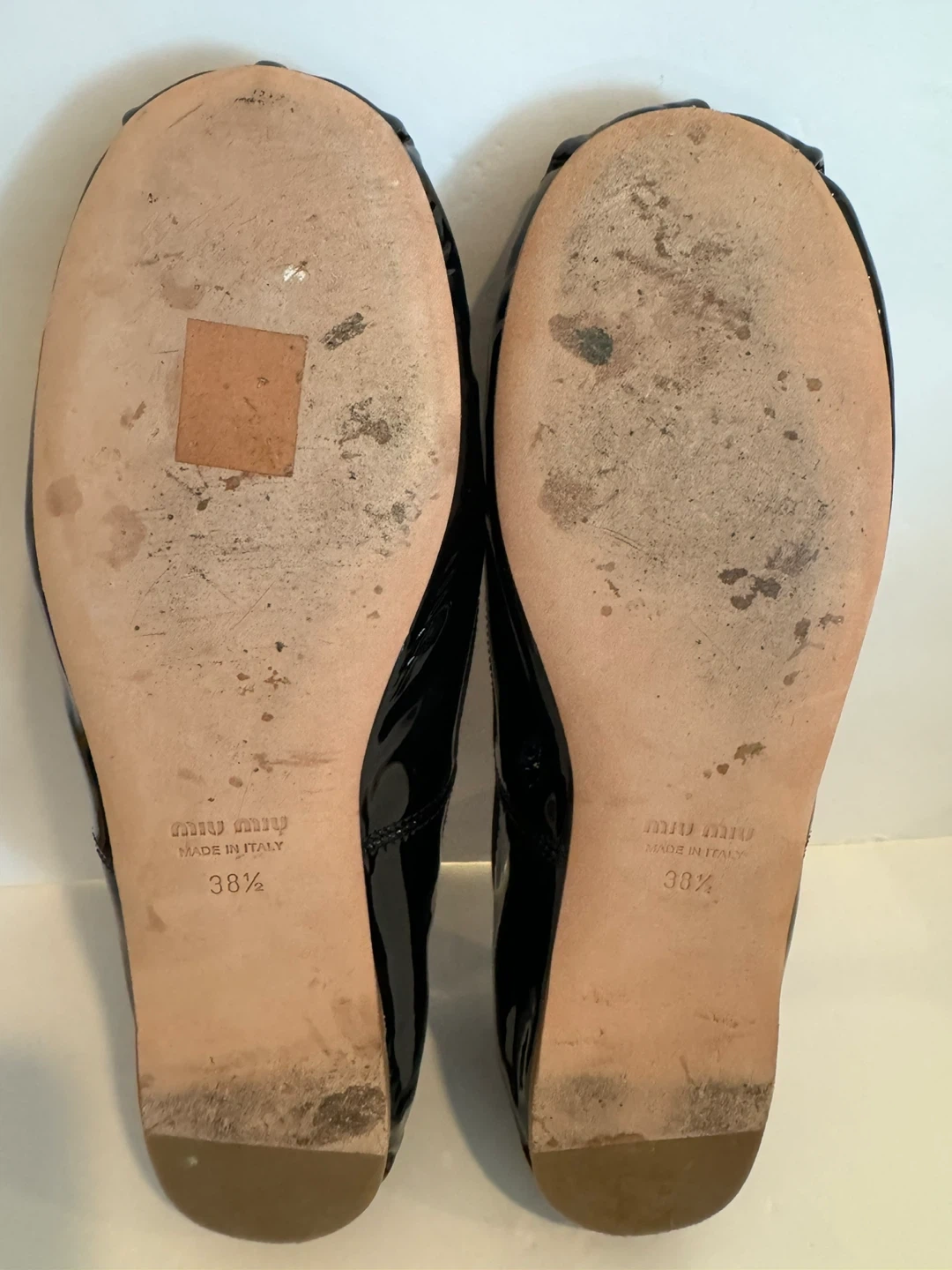 Miu Miu Black Patent Leather Ballet Flats Size 38.5