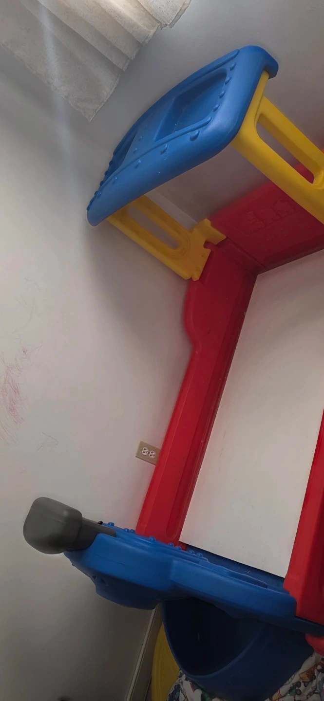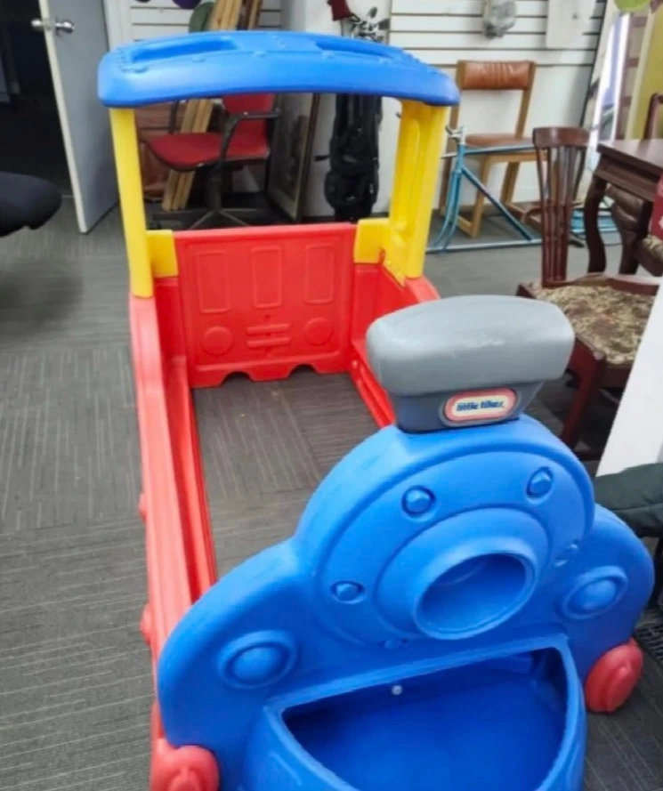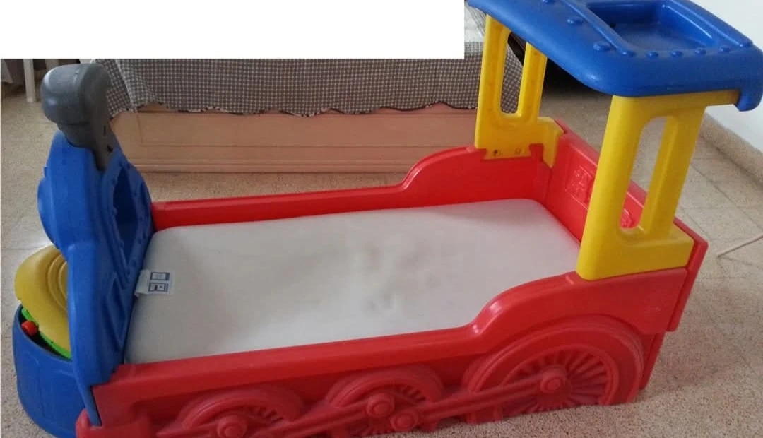 Choo-choo! All aboard the Little Tikes Train Bed! This fun toddler bed is shaped like a train and is perfect for transitioning your little one from a crib to a bed. It's made of durable plastic and features a colourful design in red, blue, and yellow. Your child will love going to sleep in this unique and playful bed!