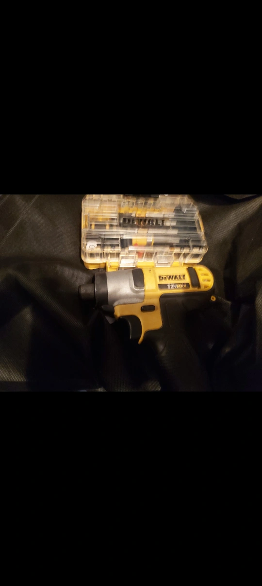 DEWALT 12V cordless drill with case and various drill bits. Great for small projects. Used condition.