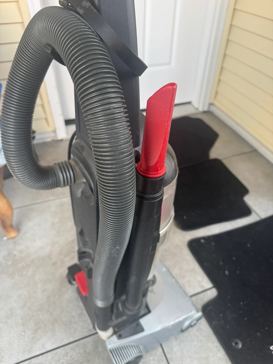 This Bissell PowerForce vacuum cleaner features a bagless design for easy dirt disposal. It's lightweight and comes with a hose and crevice tool for versatile cleaning. Perfect for quick cleanups around the house!