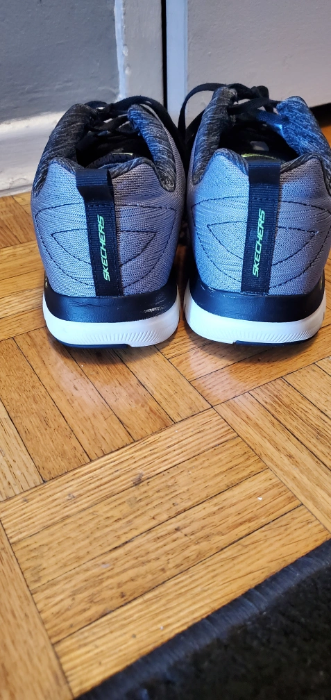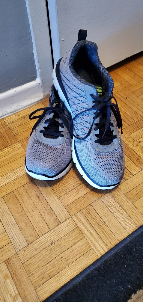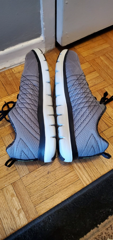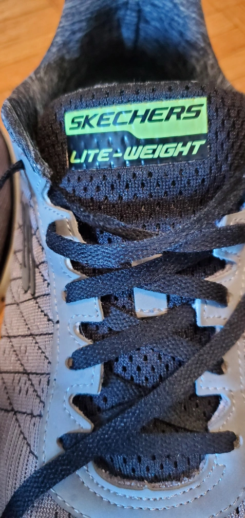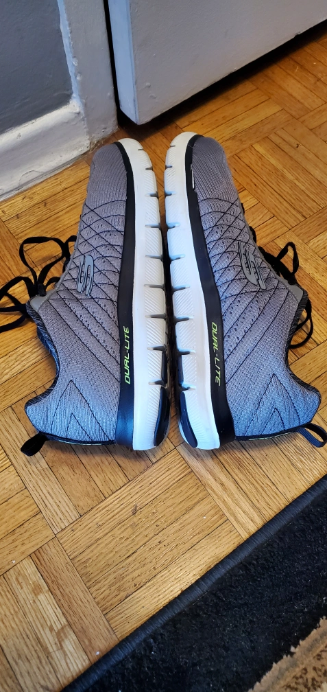 Grey running shoes with black laces. Dual-Lite technology. Lite-weight.