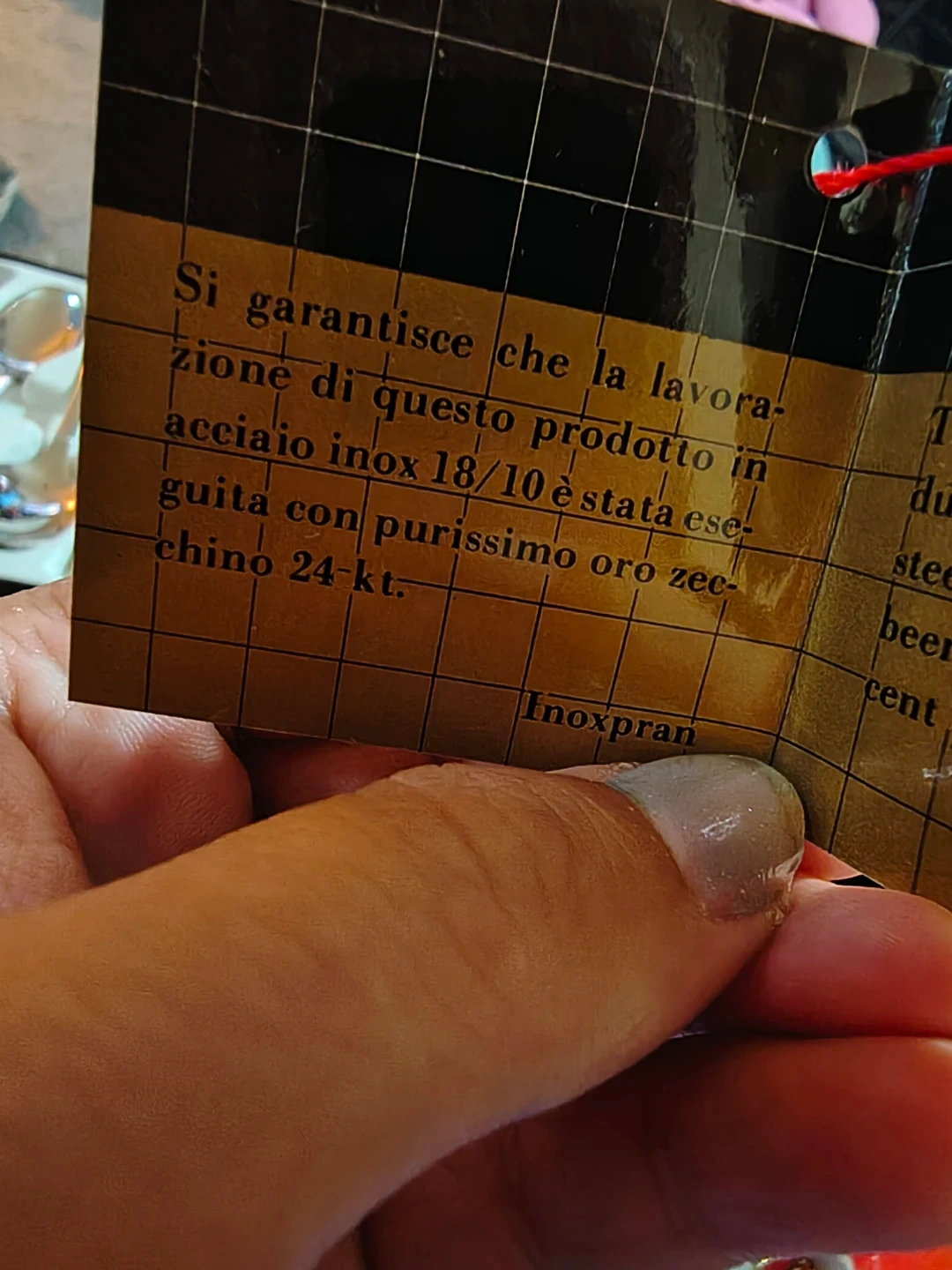 This is a set of 12 Inoxpran Linea Gold spoons. Each spoon has a polished silver finish with gold-coloured decorative handles. These spoons are made of stainless steel. Finished in 24k gold. Comes with a certificate of authenticity.