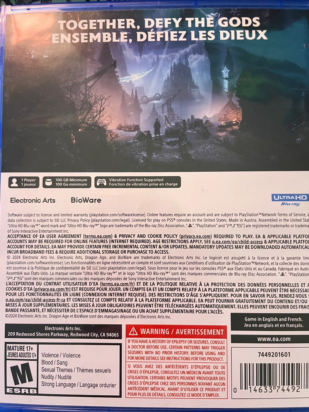 This is the PlayStation 5 version of Dragon Age: The Veilguard. It's an action role-playing game. The disc includes the game itself. Looks like new.