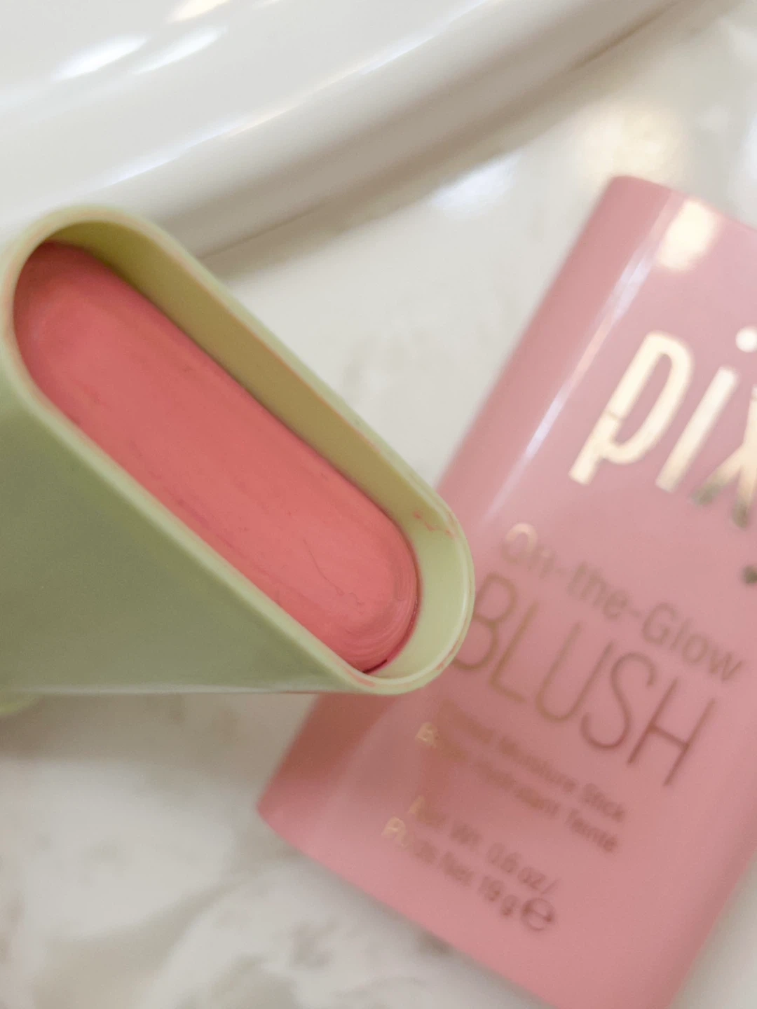 This is a Pixi On-the-Glow Blush Tinted Moisture Stick. It's a makeup stick for adding colour and moisture. Net weight is 0.6 oz / 19 g. It’s 80% new.